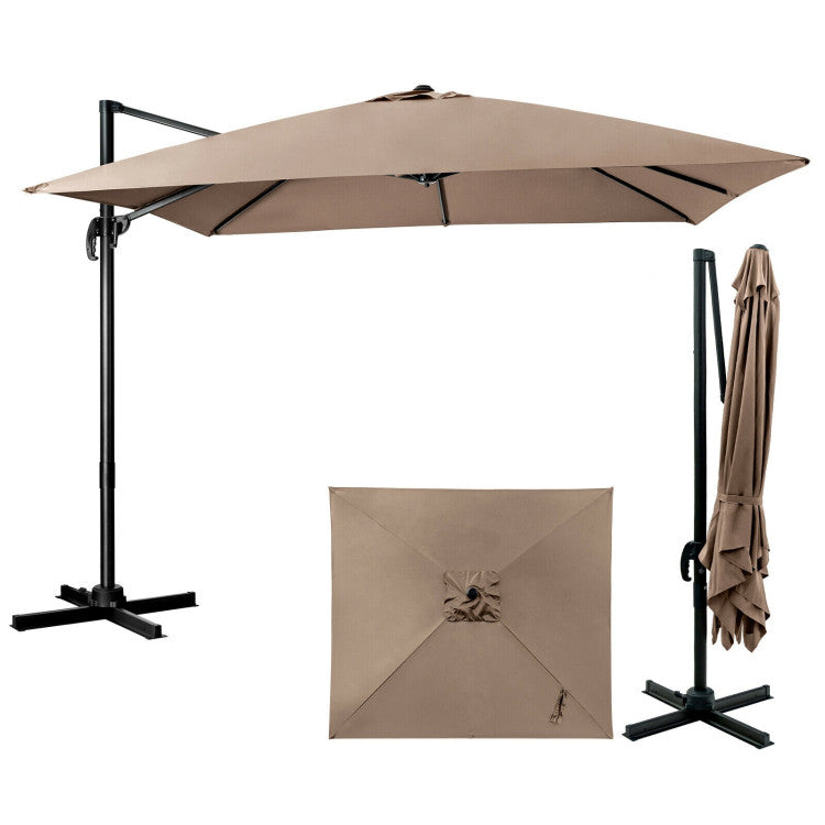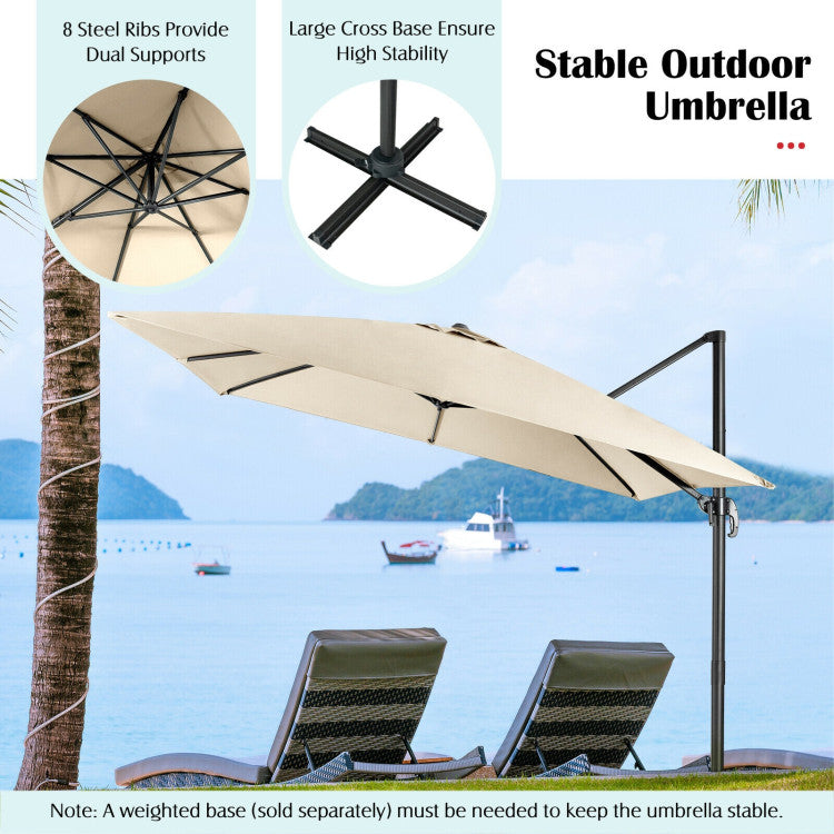10 x 10 Feet 8-Rib Cantilever Offset Square Patio Umbrella with 3 Tilt Settings