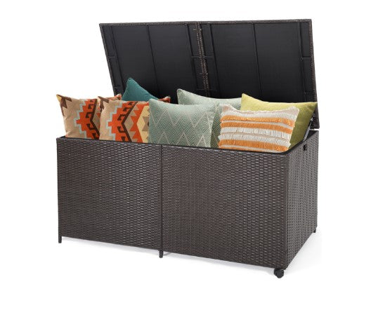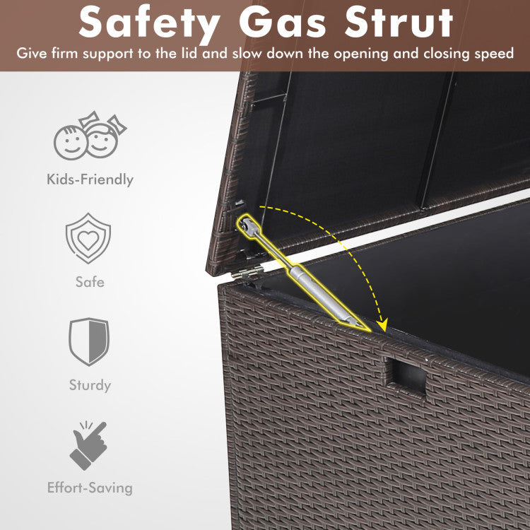 ● High Stability and Durability: The heavy-duty metal frame with PP board of the lid and the additional middle feet ensures high stability. And the safety pneumatic rod saves much effort and slow down the opening and closing speed. Also, the hand-woven mix brown PE rattan ensures long-time outdoor use.
