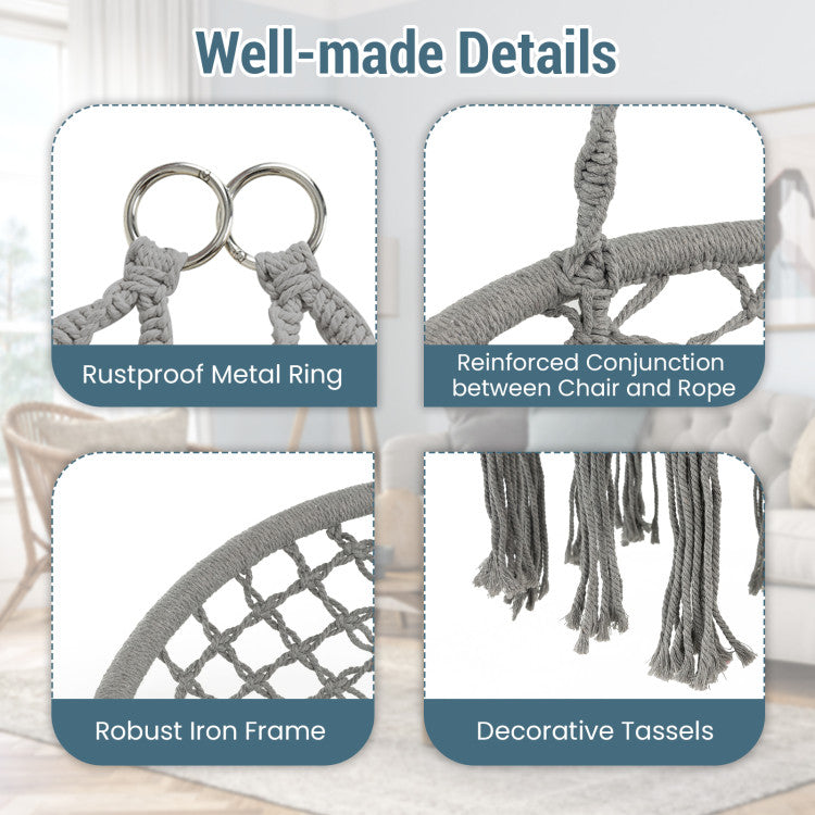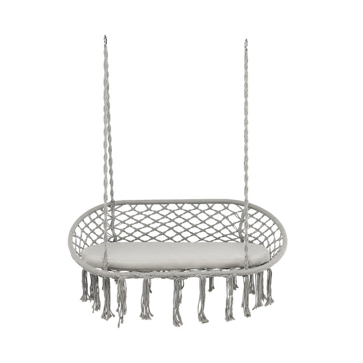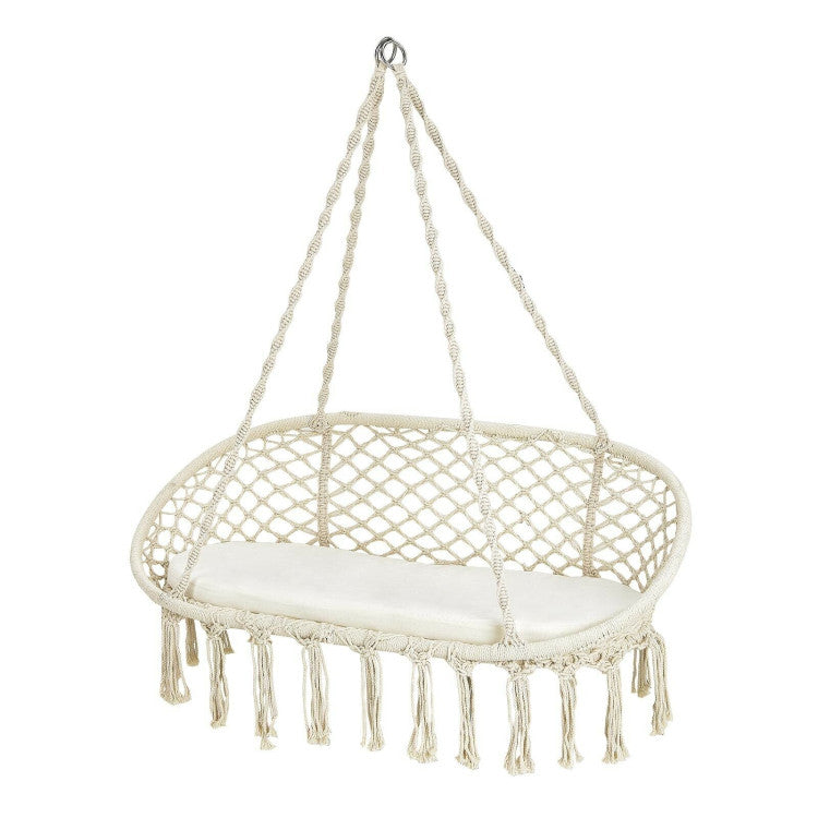 2 Person Hanging Hammock Chair with Cushion Macrame Swing