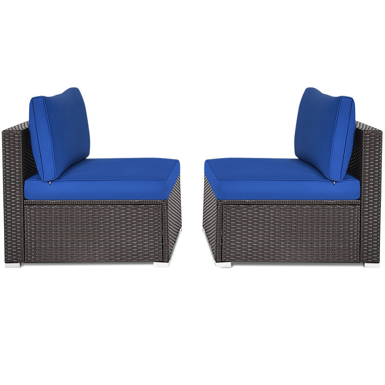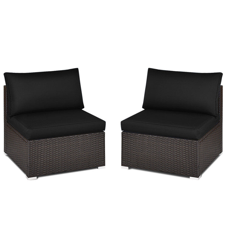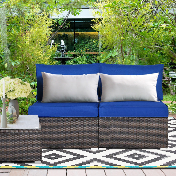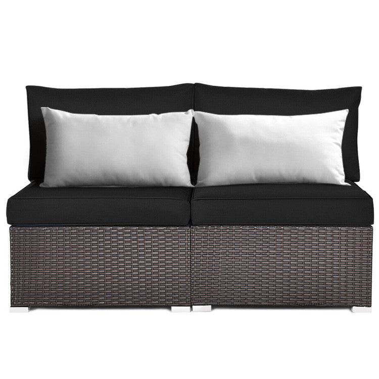 2 Pieces Patio Rattan Armless Sofa Set with 2 Cushions and 2 Pillows