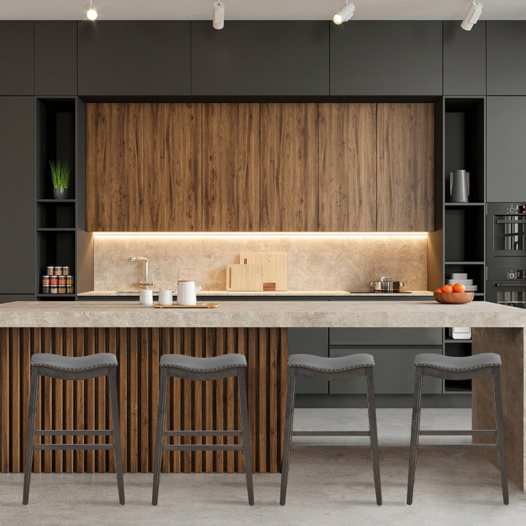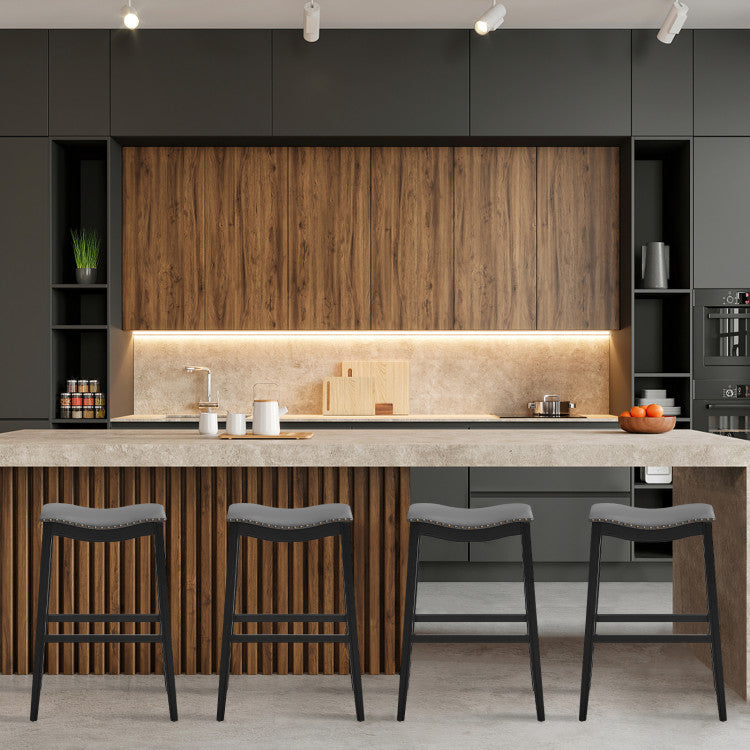 ● Ergonomic Saddle Stools: The backless bar stool features a saddle shape, which fits your body's curve well. With an appropriate height of 29", you can comfortably sit beside your kitchen island or bar table, and become more relaxed by placing your feet on the 4 footrests.