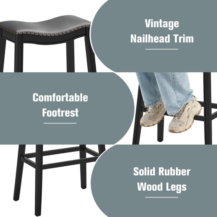 29 Inch Set of 2 Backless Wood Nailhead Barstools with PVC Leather Seat