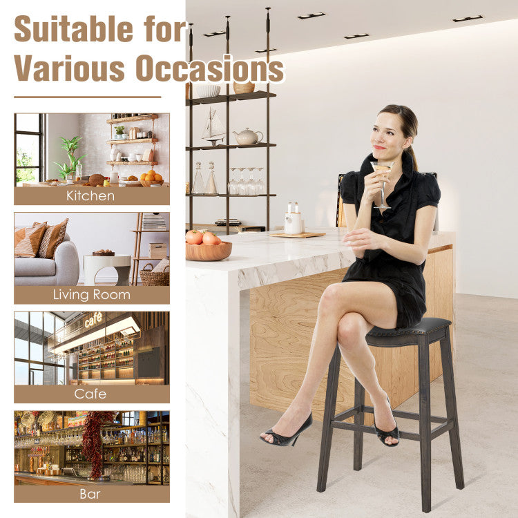● Stylish Appearance & Wide Applications: Seats of these hardwood stools are bordered with exquisite rivets, adding a unique flavour. With its stylish design, this backless saddle chairs set is a great addition to home, cafes, restaurants, bars, etc.