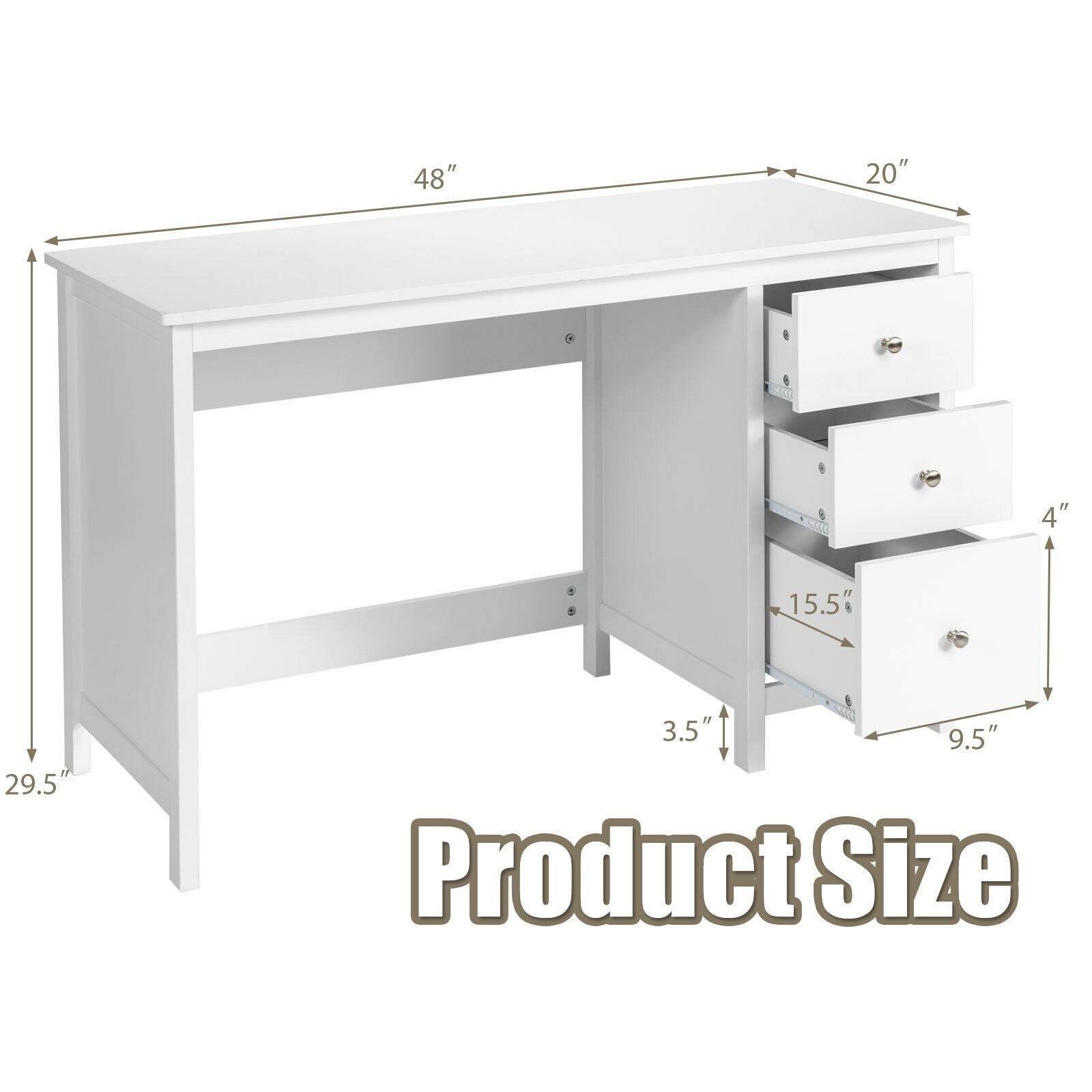 Made of durable MDF, the computer desk is sturdy and reliable for a long service time. Coming with 3 large drawers, it provides enough storage space for computers, books, and other office supplies. Also, the office desk is designed with a spacious tabletop to ensure optimal workspace and keep your daily essentials in order. With a simple but elegant design, it is a perfect complement to your house and office. Besides, it is an ideal choice whether you need a spot to study, dress up or finish important work!