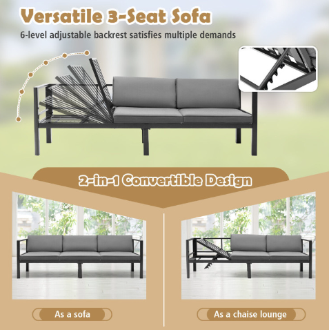 ● Versatile 3-Seat Sofa: The 3-seat sofa with 84.5" length offers ample sitting area for 3 people to sit. Also, it can be converted into a comfortable chaise lounge by raising up the backrest on the left. The 6-level adjustable backrest will satisfy your multiple demands for relaxing, such as reading, sunbathing and napping.