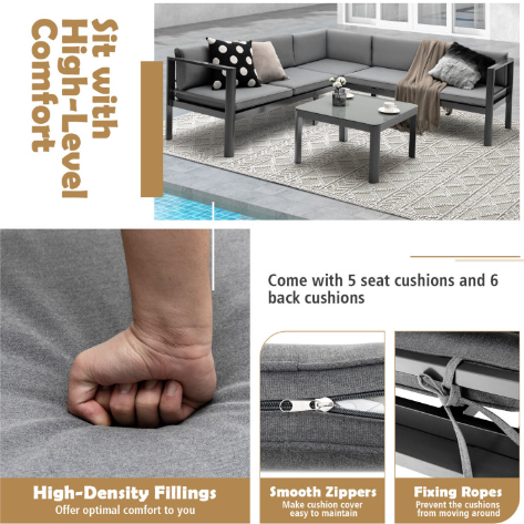 ● Cozy Seat and Back Cushions: Both the 3-seat sofa and loveseat are equipped with seat and back cushions. And all the cushions are designed with high-density fillings for optimal comfort. The smooth zippers make the cushion cover easy to maintain. And the design of fixing ropes prevents cushions from moving around.