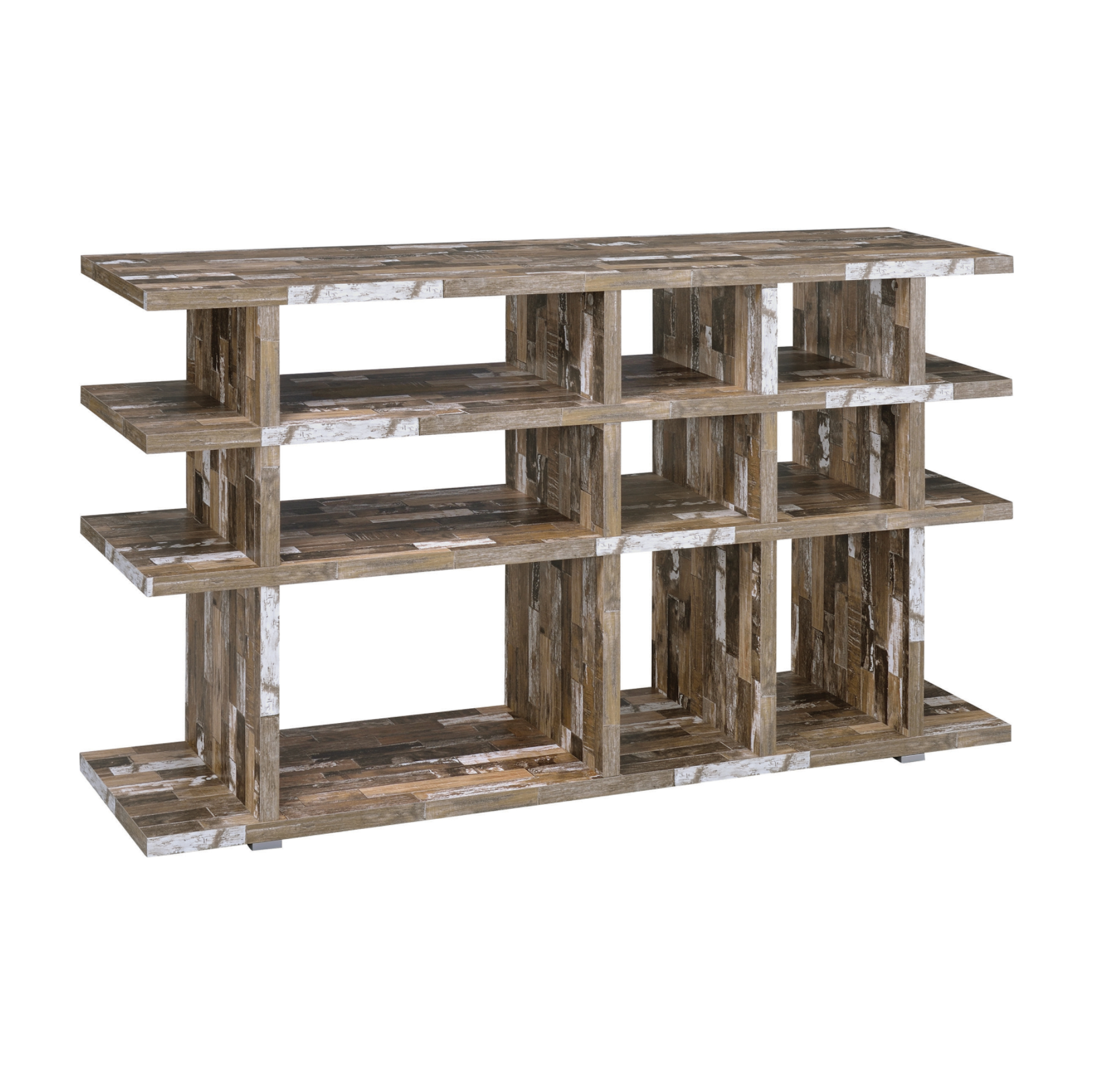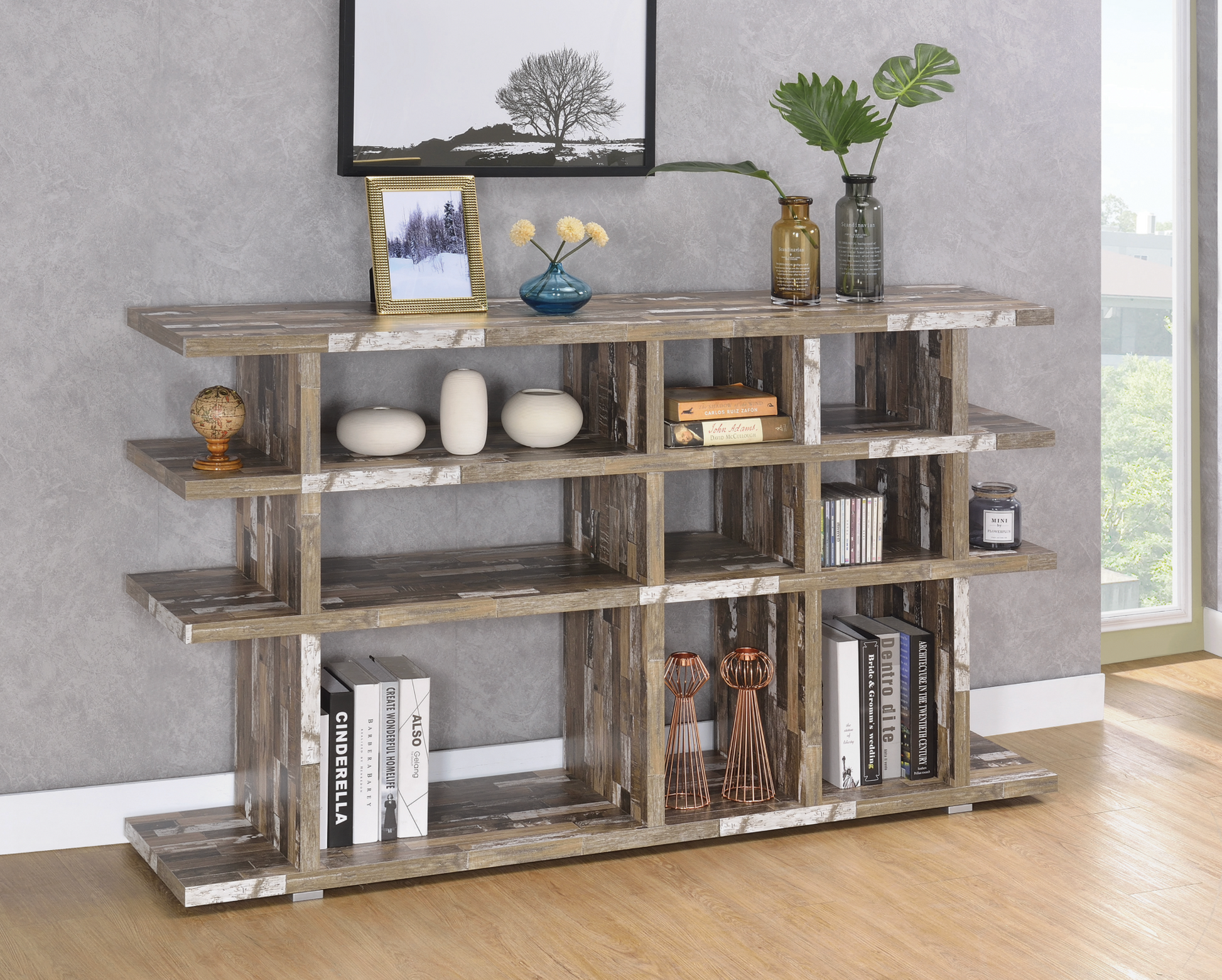 Bring an easy, casual elegance to any space. Space-saving and attractive, this bookcase is a perfect fit for a modern room in need of extra display space. Three tiers leave ample room to show off books, decor, and even potted greenery. With a salvaged cabin finish, its cottage-inspired distressed flavor brings an aged vintage feel. This three tier bookcase is a great addition to a kitchen space or main living area.