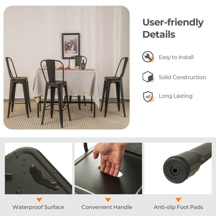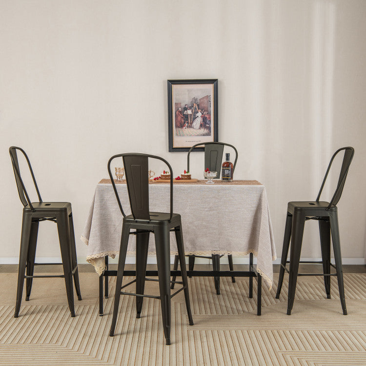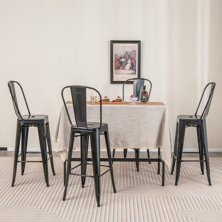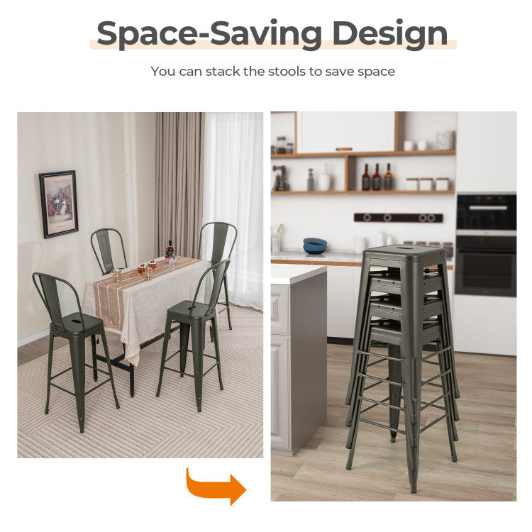 30 Inch Set of 4 Modern Metal Industrial Bar Stools with Removable High Back