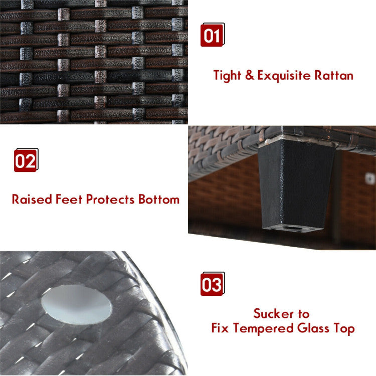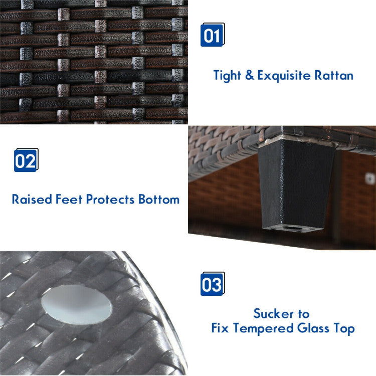 ● Sturdy Frame and Premium Rattan: The outdoor furniture sofa set is constructed of a strong steel frame and hand-made weather-resistant PE rattan which is durable. And the weight capacity of the set is improved by outstanding craftsmanship. What's more, the tempered glass coffee table top is not only beautiful but also safe and sturdy.