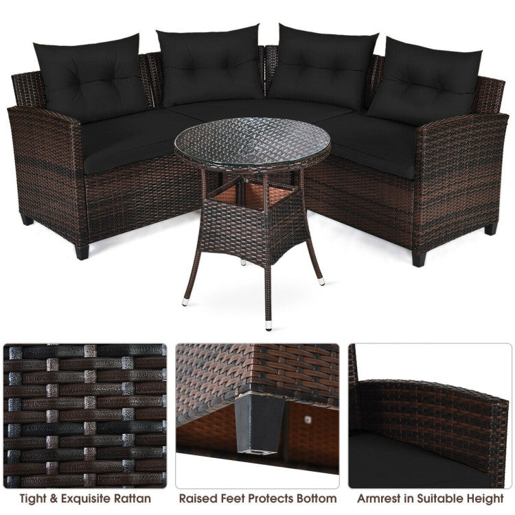 4 Pieces Outdoor Cushioned Rattan Furniture Set