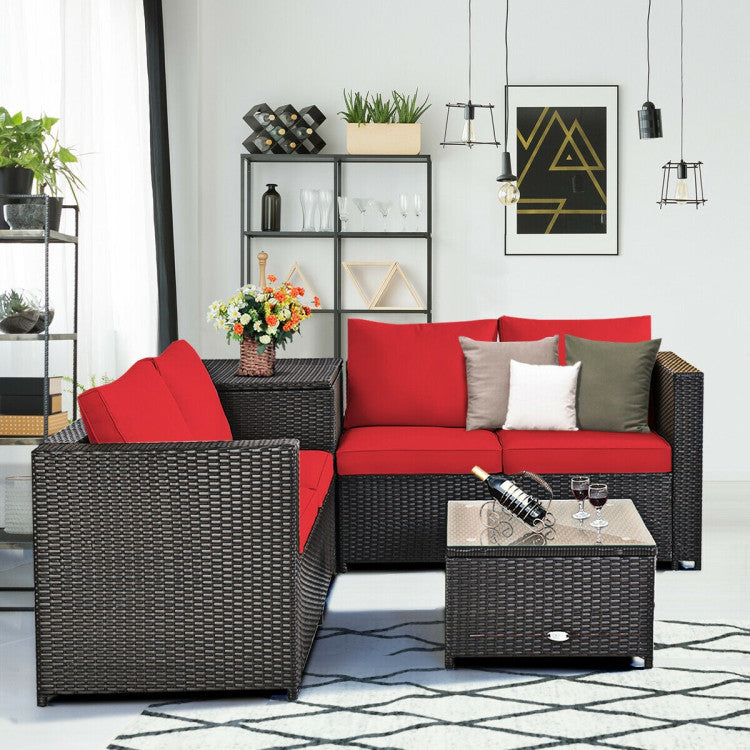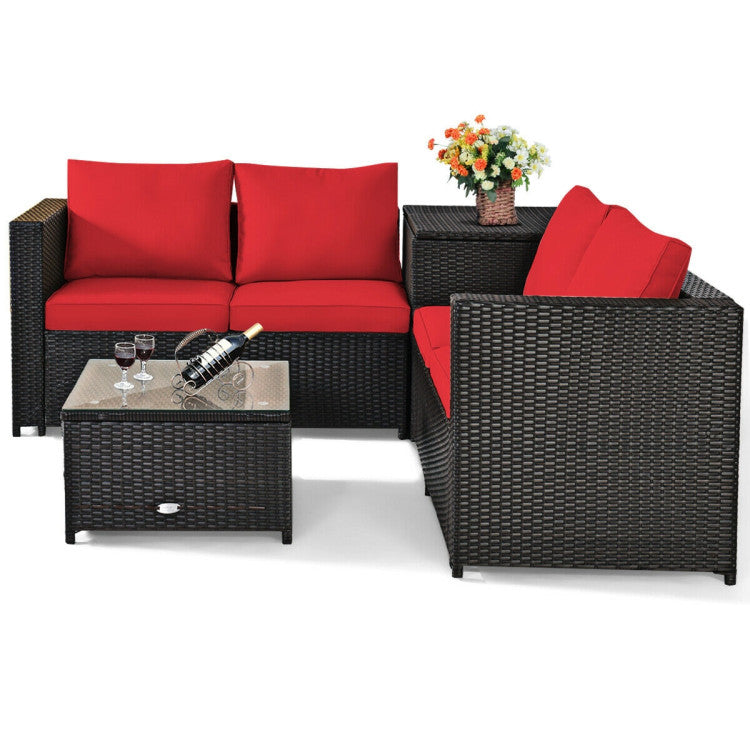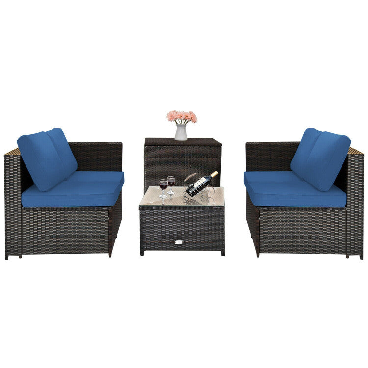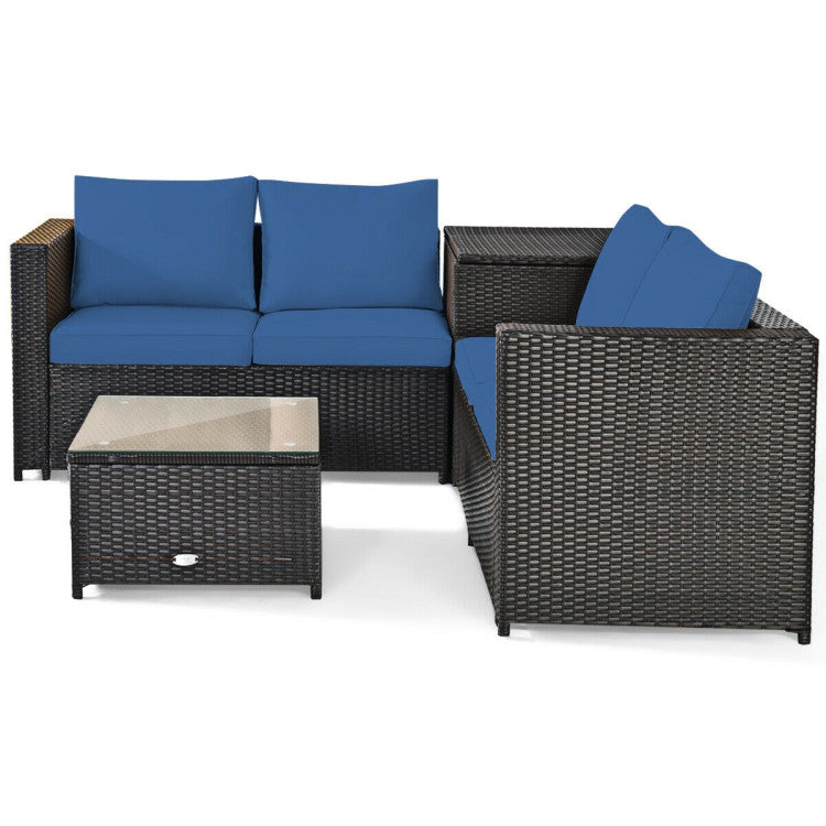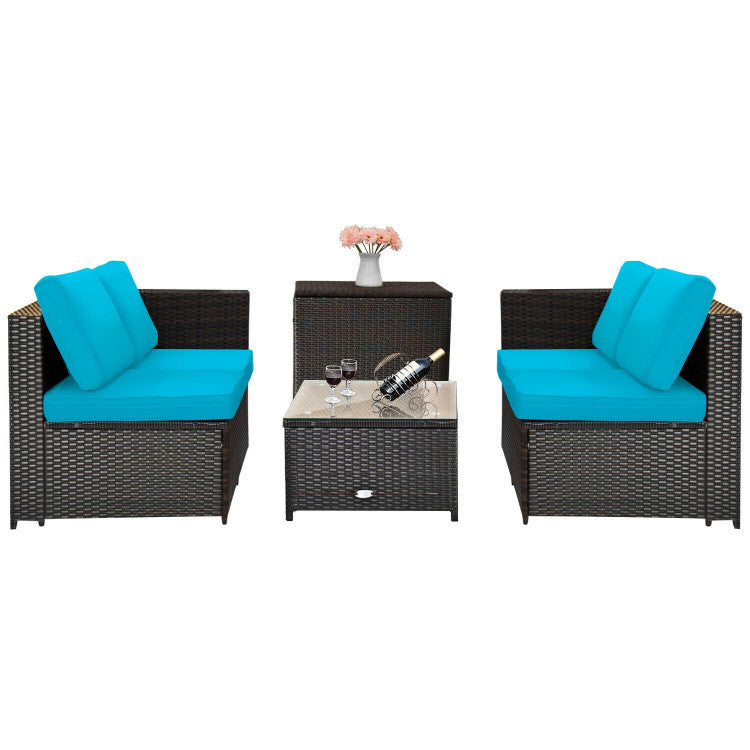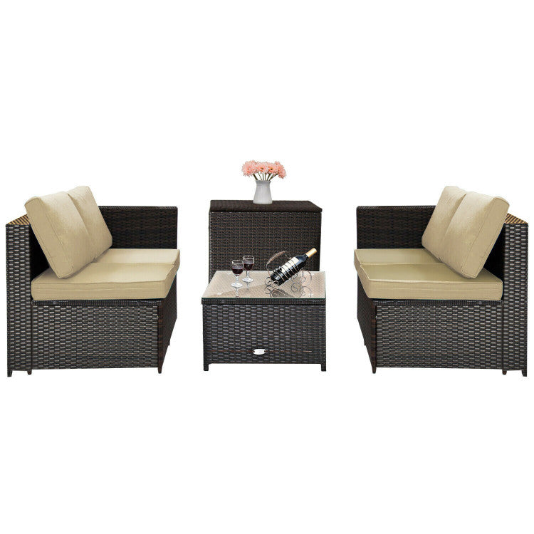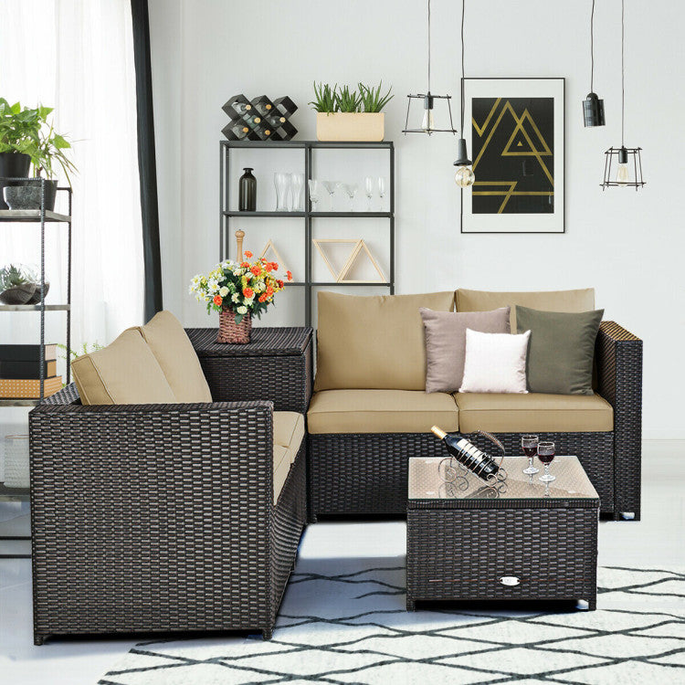 4 Pieces Outdoor Patio Rattan Furniture Set with Loveseat and Storage Box(clearance)