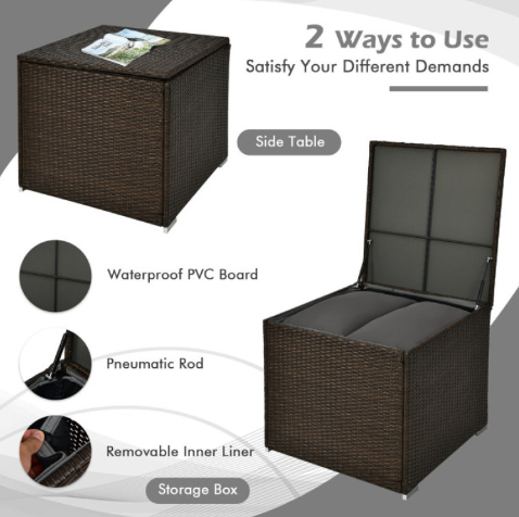 ● Convenient Storage Box: To satisfy your different demands, this storage box features 2 ways to use it. Apart from serving as a storage box, it can be used as a side table as well. Besides, it has a 74-gallon large capacity so that all the cushions can be put in it. And the internal waterproof PVC board and fabric effectively protect cushions from being wet for a long service time.