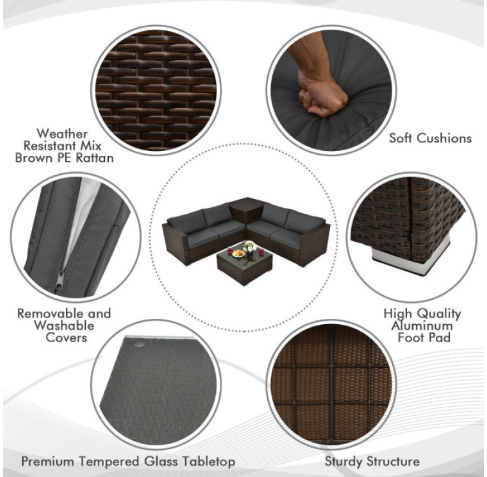 ● Ensure Years to Use: The heavy-duty and rustproof steel frame is wrapped with weather-resistant brown PE rattan that makes this patio furniture set withstand different weather conditions. And the premium tempered glass tabletop is sturdier and safer, allowing you to put different items on it without worry. In addition, the high-quality aluminum foot pads extend the longer lifespan.