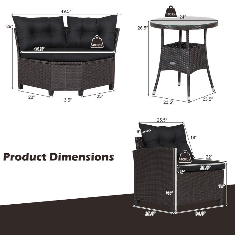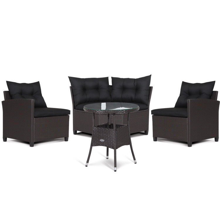 4 Pieces Patio Rattan Furniture Set Cushioned Sofa Glass Table