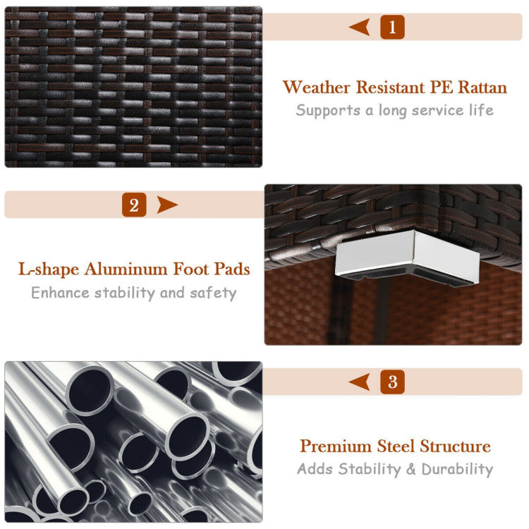 ● Durable Construction and Selected Material: Made of solid premium steel cross structure, this outdoor sofa set is sturdy enough for large weight capacity. Hand-woven PE wicker offers high tensile strength and weather resistance, which can withstand season variations for a long-lasting use.