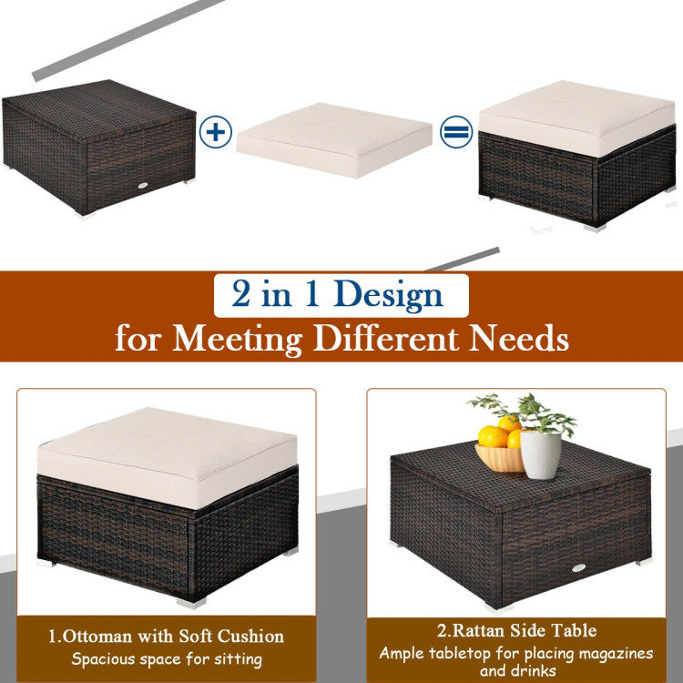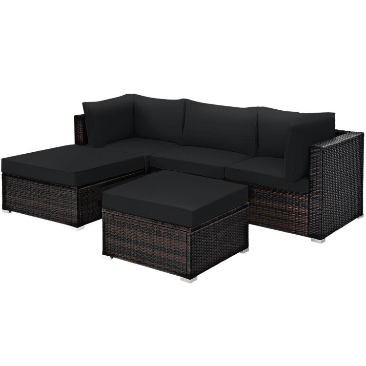 5 Pieces Patio Sectional Rattan Furniture Set with Ottoman Table