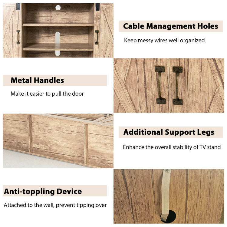 55 Inch Sliding Barn Door TV Stand with Adjustable Shelves for TVs up to 65 Inch