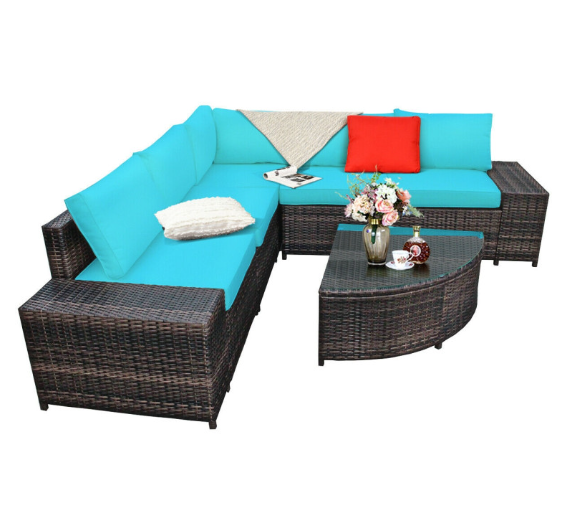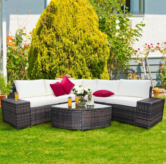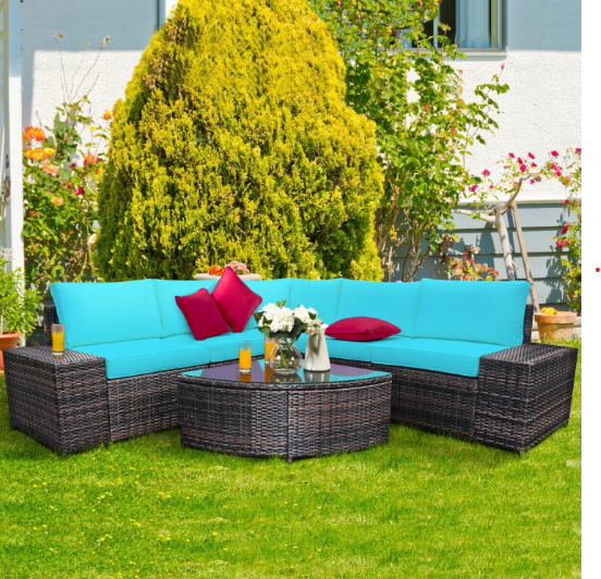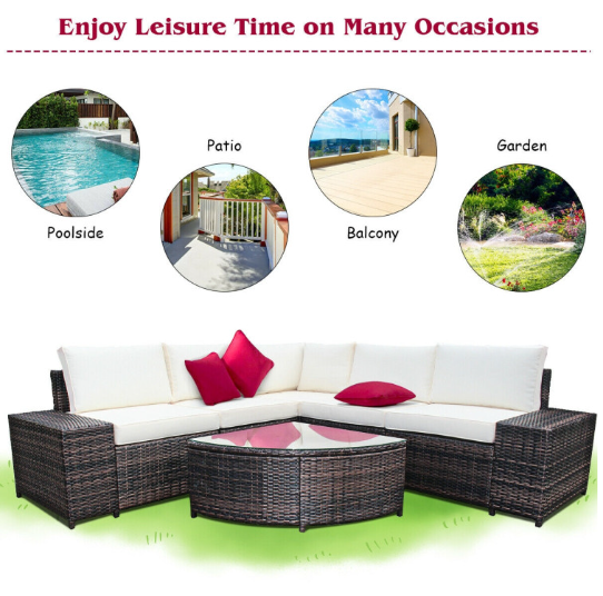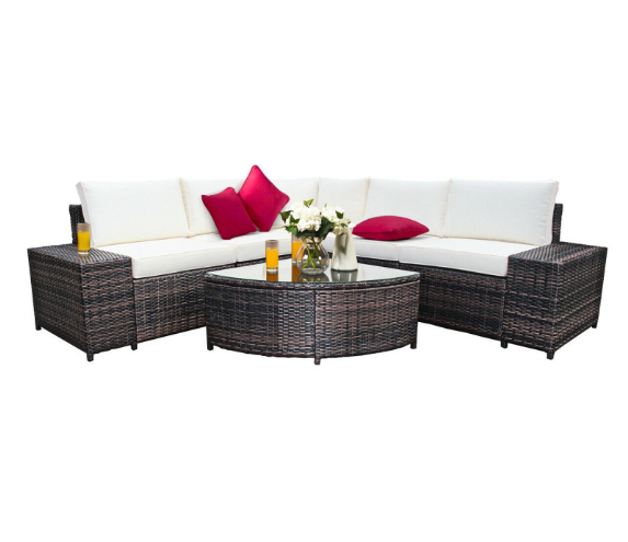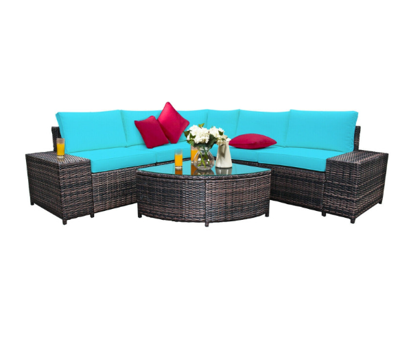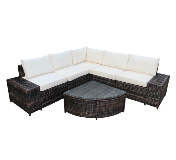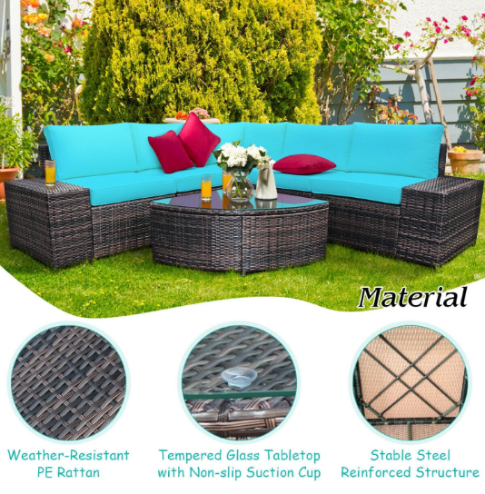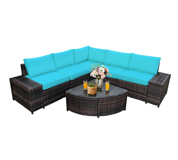 6 Piece Wicker Patio Sectional Sofa Set with Tempered Glass Coffee Table