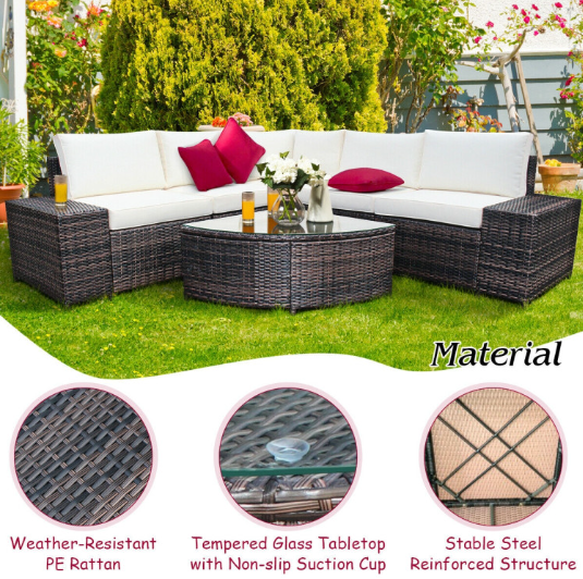 ● Selected Materials and Sturdy Structure: Constructed of all-weather PE rattan and powder-coated steel, this patio furniture set is wear-resistant and rust-proof to ensure all-year-round use. Besides, tightly woven rattan and reinforced structure at the bottom provide better load-bearing capacity and stability. Also, Plastic non-slip pads prevent the floor from being scratched.