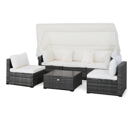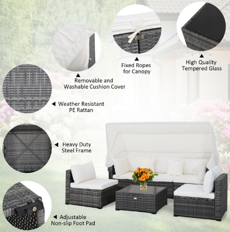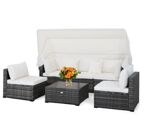 6 Pieces Patio Rattan Furniture Set with Retractable Canopy