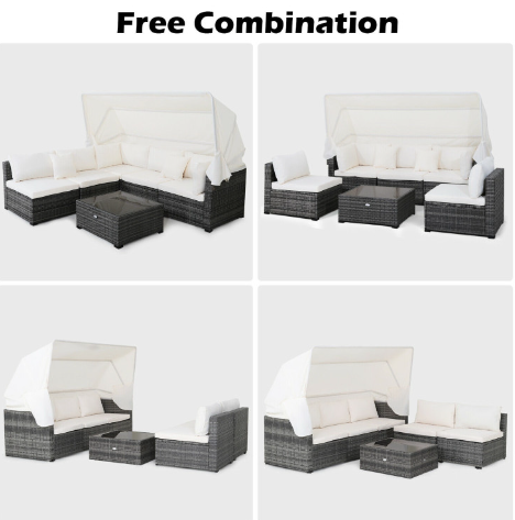 ● Free Combination: This 6-piece outdoor furniture set includes 1 coffee table, 2 corner sofas and 3-seat daybed sofa so that you can rearrange them according to your preference and available places, such as patio, backyard, poolside, garden and more, making a modern yet simple addition to your outdoor places. In order to assemble this furniture set correctly, please do not tighten all the screws until all the holes are aligned.