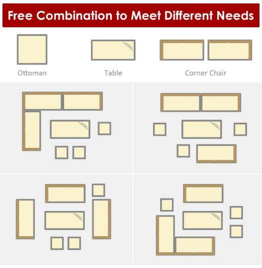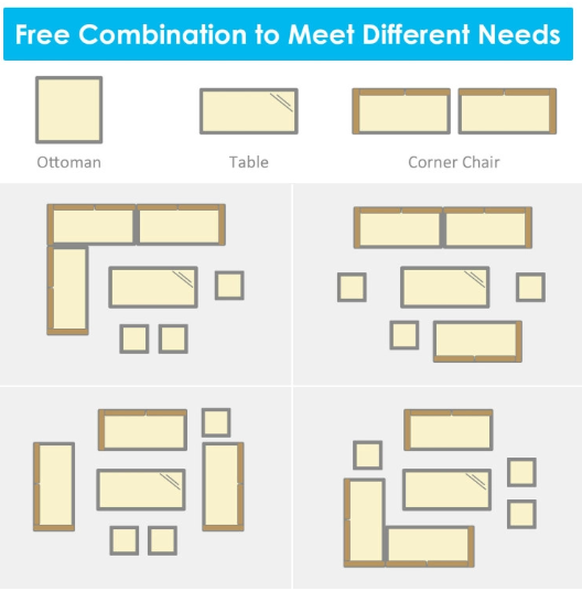 ● Free Combination and Modern Design: Including 3 corner chairs, 3 ottomans and 1 table, this rattan sofa set provides enough space for gatherings of family or friends and can be easily changed to different layouts based on your needs. More, this simple yet stylish sofa set can match well with any outdoor space including garden, patio, poolside, etc.