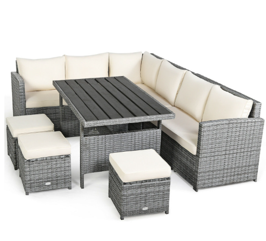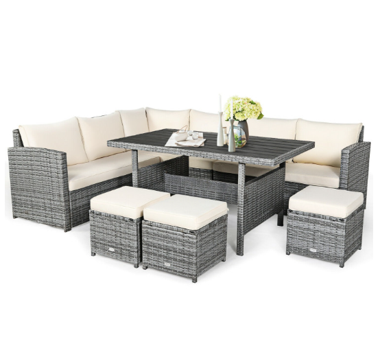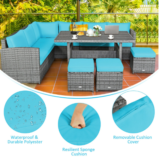 7 Pieces Outdoor Wicker Sectional Sofa Set with Dining Table