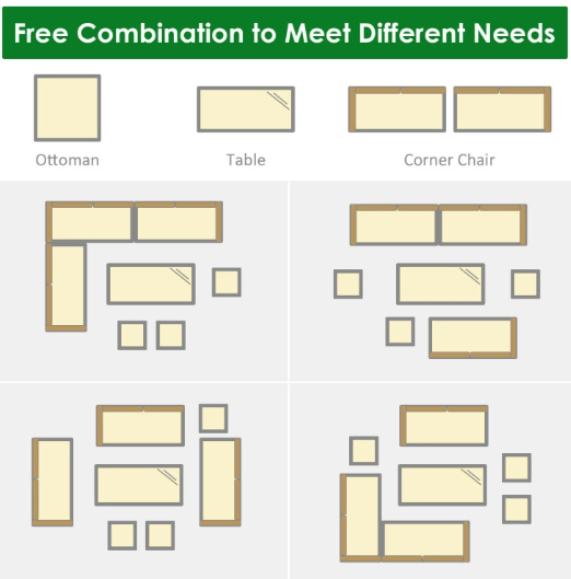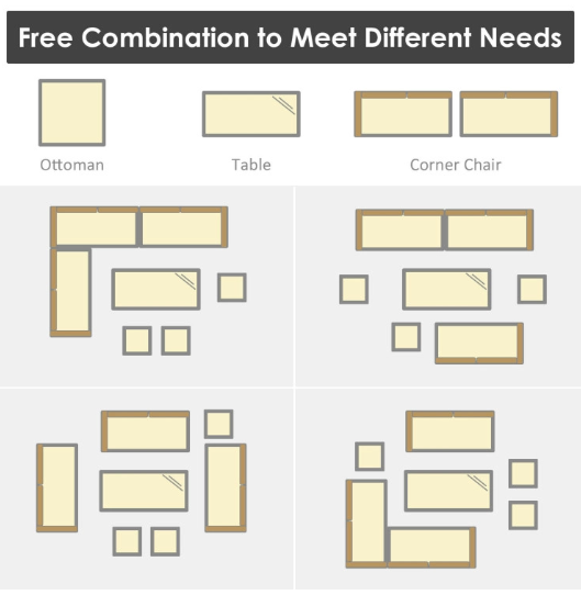 ● Cozy Cushion with Removable Cover: Featuring thick and resilient sponge padded cushions, this 7-piece sofa set will offer you a super comfortable sitting experience. Equipped with smooth zippers, the cushion covers are easy to remove and clean. Besides, the cushion of the ottoman is designed with ties to provide better fixation.