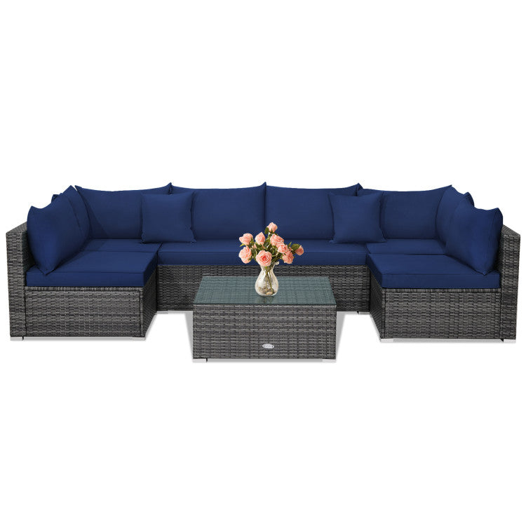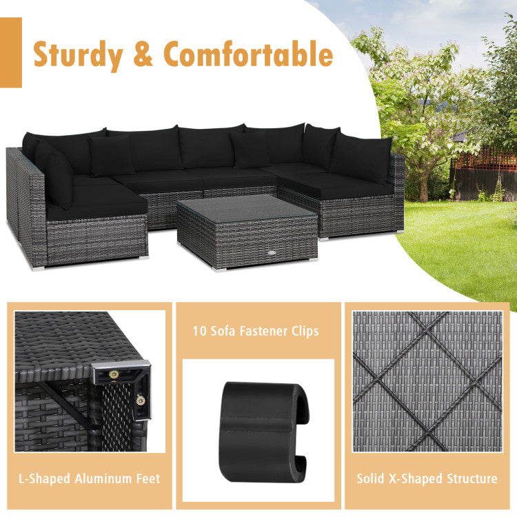 7 Pieces Patio Rattan Furniture Set with Sectional Sofa Cushioned