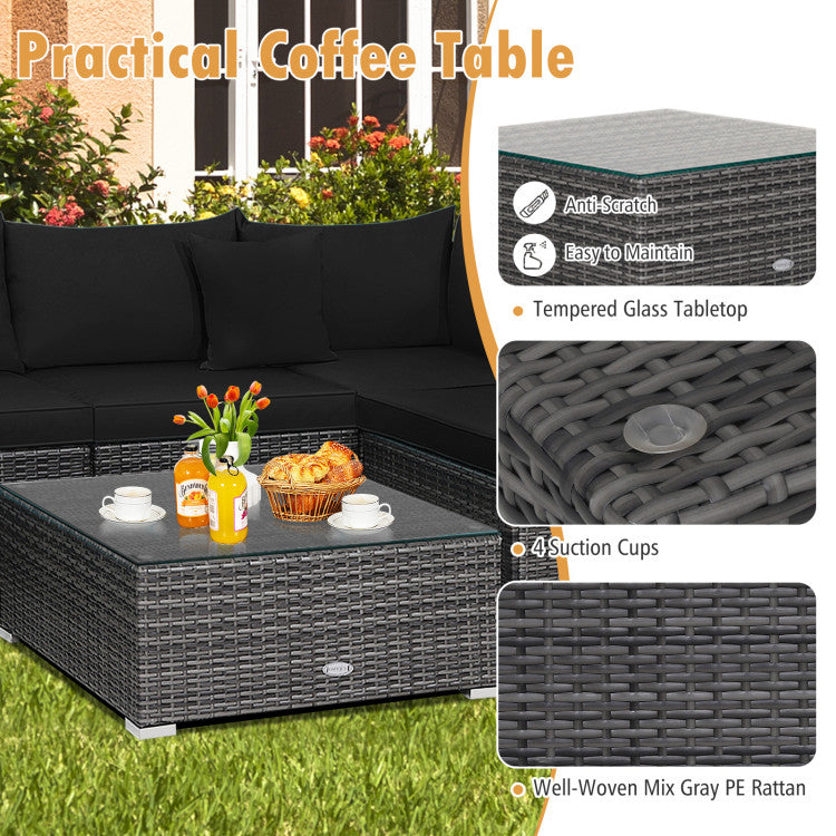 ● Selected Materials: The all-weather mix of gray PE rattan, premium tempered glass and rustproof steel frame make this outdoor furniture set suitable for outdoors to accompany you for a longer time. Besides, the anti-rust aluminum feet and reinforced structure ensure strong stability.
