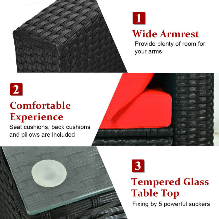 ● Modern Style with Coffee Table: Modern wicker furniture set combines outstanding quality and chic appearance, and makes it great for your patio, garden, backyard and poolside. Besides, the functional coffee table has a durable tempered glass top which is fixed by 5 powerful suckers to offer space for drinks and books.