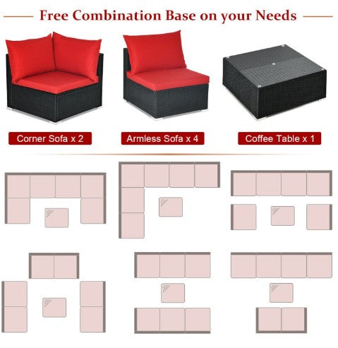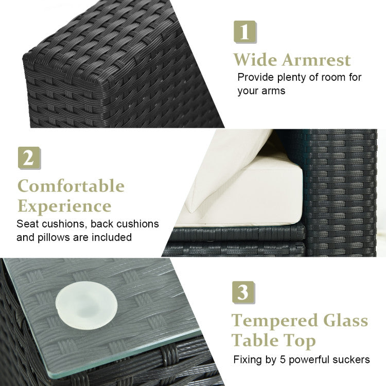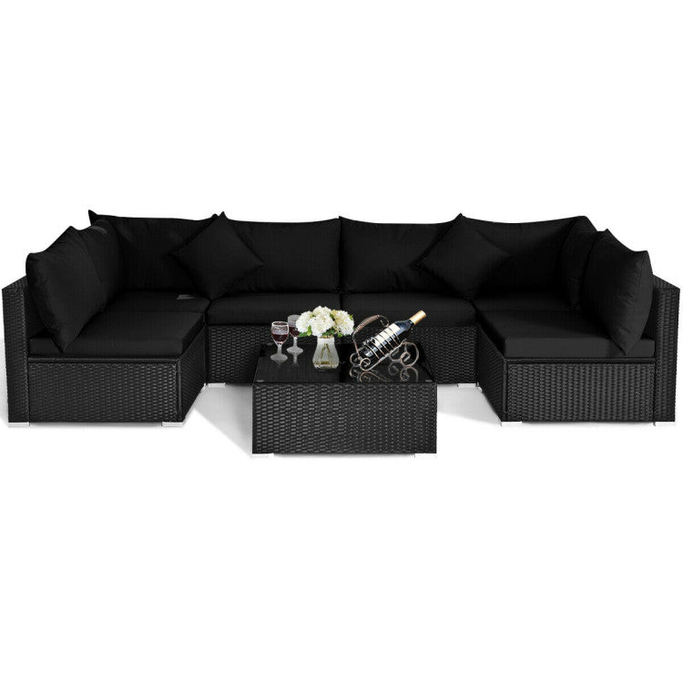 7 Pieces Sectional Wicker Furniture Sofa Set with Tempered Glass Top