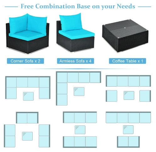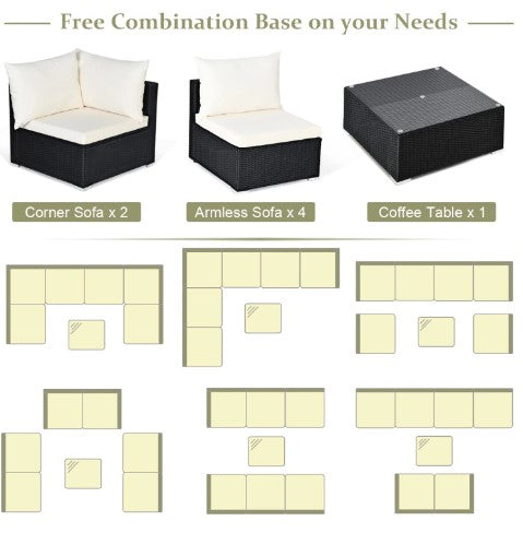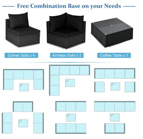 ● Free Combination of Sectional Sofa: Comes with four armless sofas, two corner sofa and a coffee table, this patio furniture can be flexible in combination according to your needs and based on your room space. In addition, 10 clips secure the sofa firmly together to avoid sliding. The patio furniture set with ample seats allows you to relax with your friends.