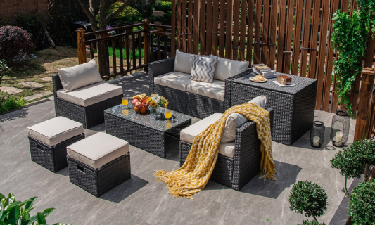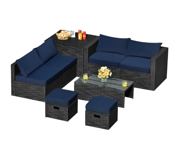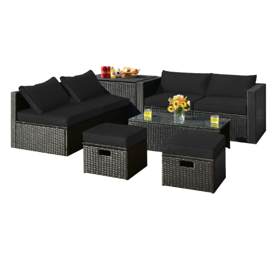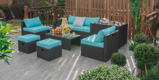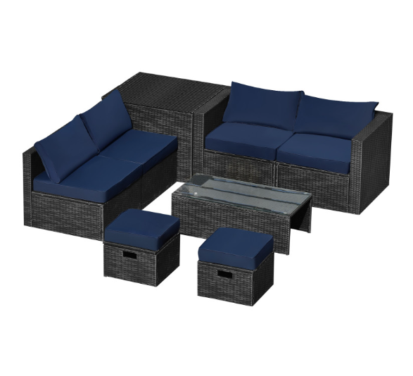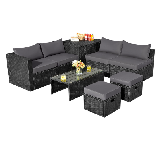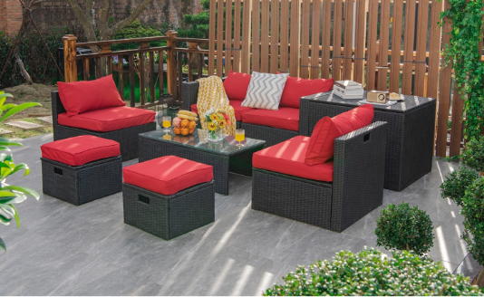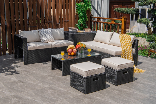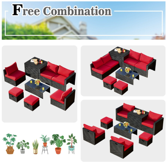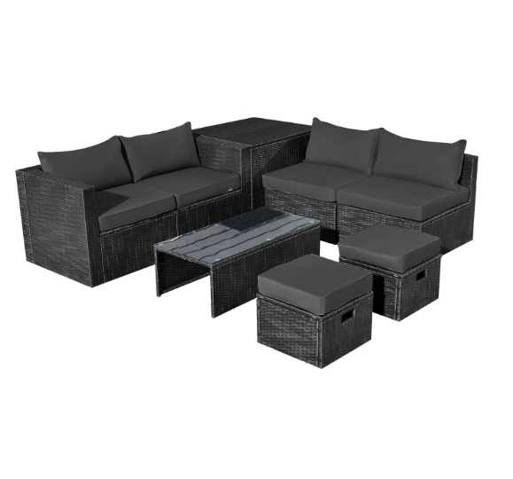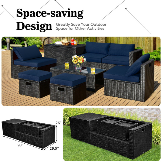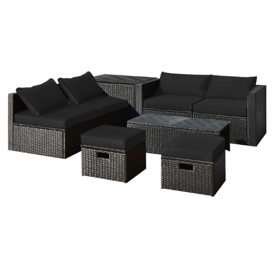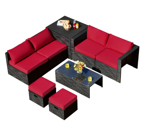 ● 8-piece Modular Set: In order to rearrange your outdoor space based on your preference and available place, this 8-piece outdoor patio furniture set with 1 tempered glass coffee table, 1 storage box, 2 ottomans, 2 armless sofas and 2 corner sofas allows you to combine them into different layouts for great flexibility.