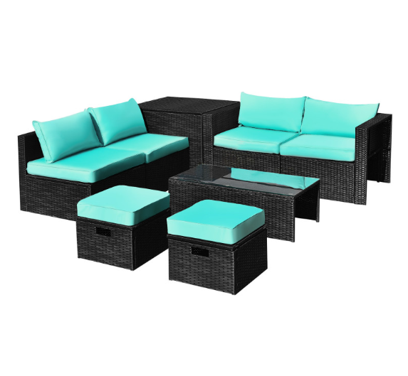 8 Pieces Patio Furniture Set with Storage Box and Waterproof Cover