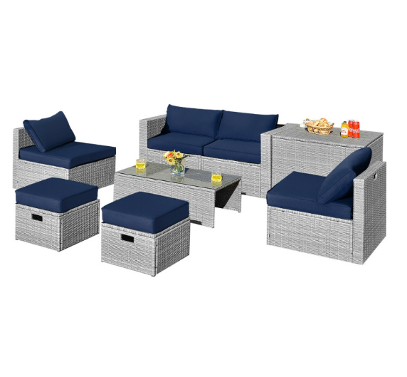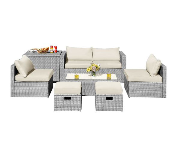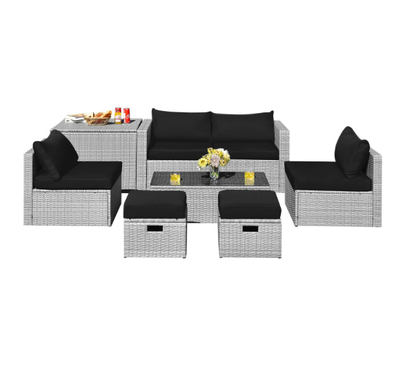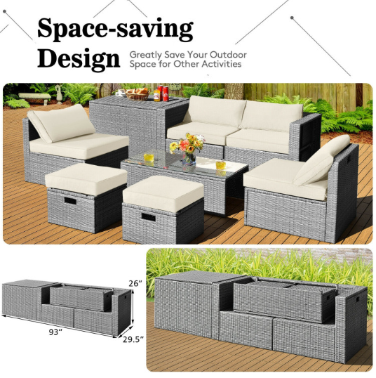 8 Pieces Patio Rattan Furniture Set with Storage Waterproof Cover and Cushion