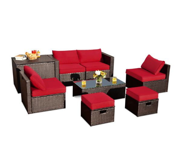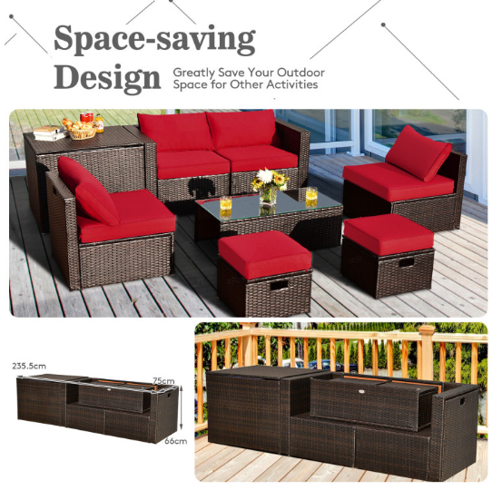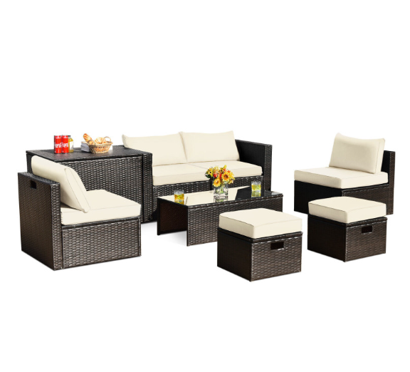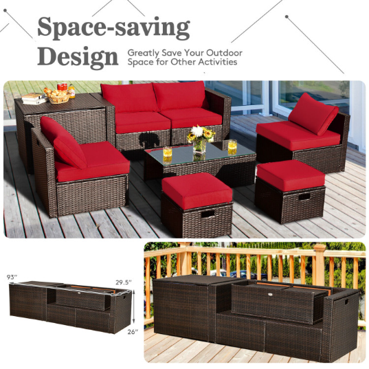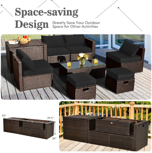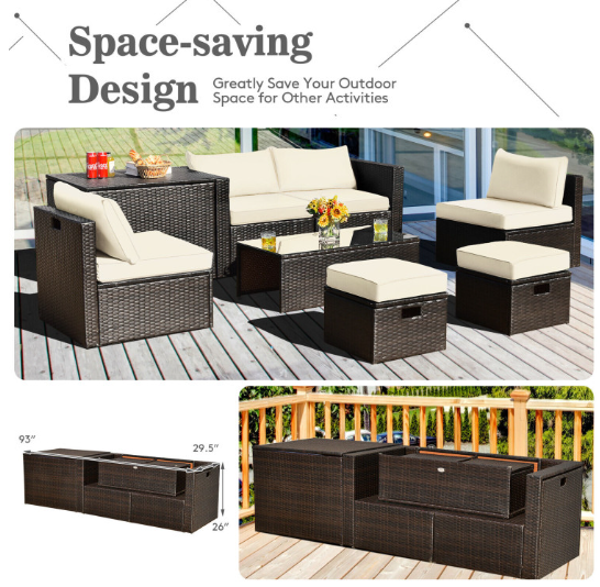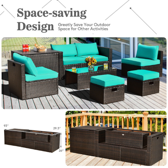 8 Pieces Patio Space-Saving Rattan Furniture Set with Storage Box and Waterproof Cover