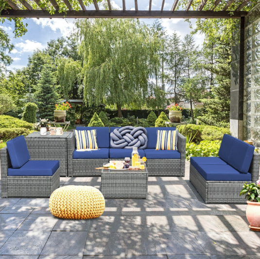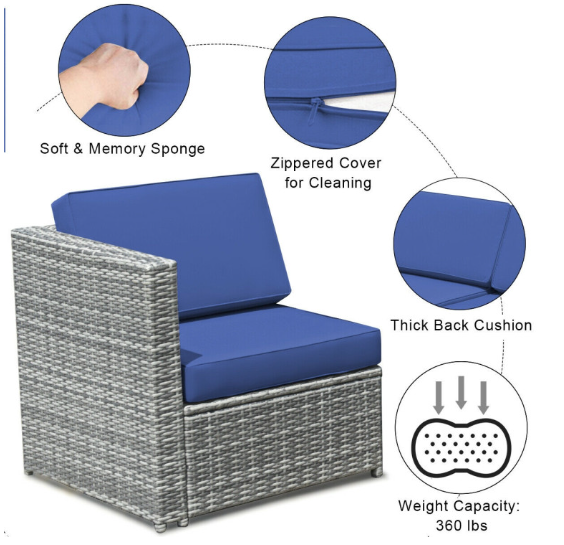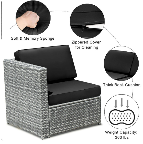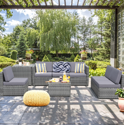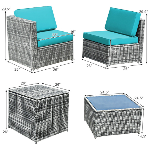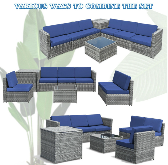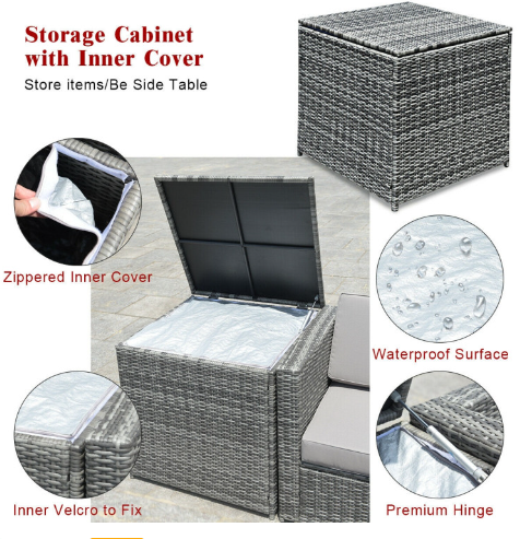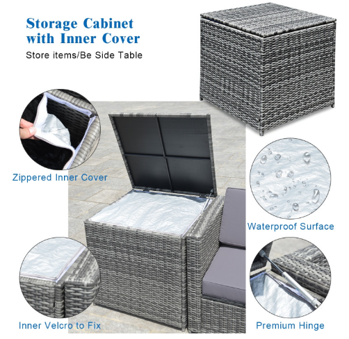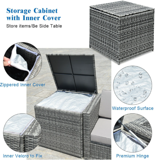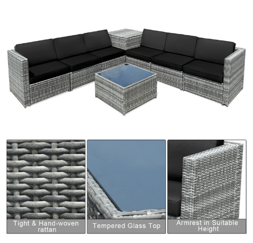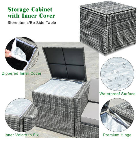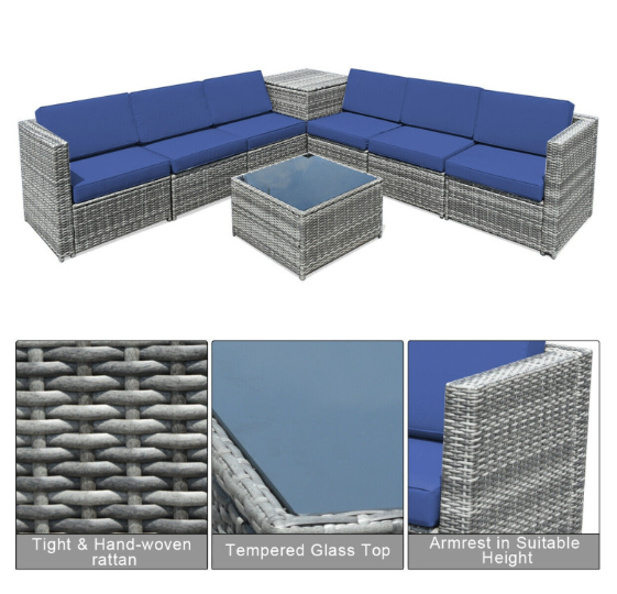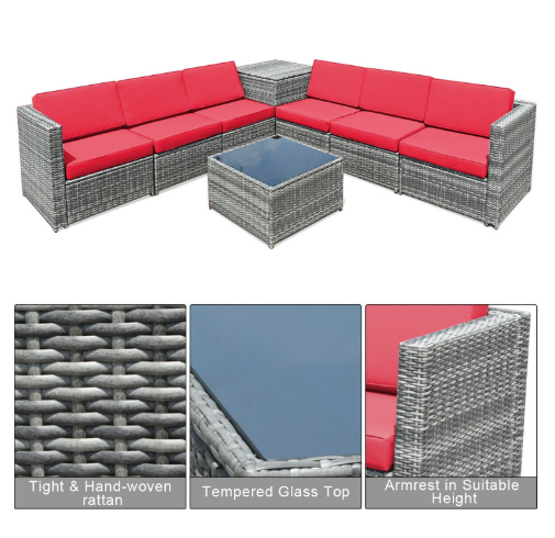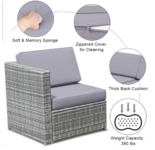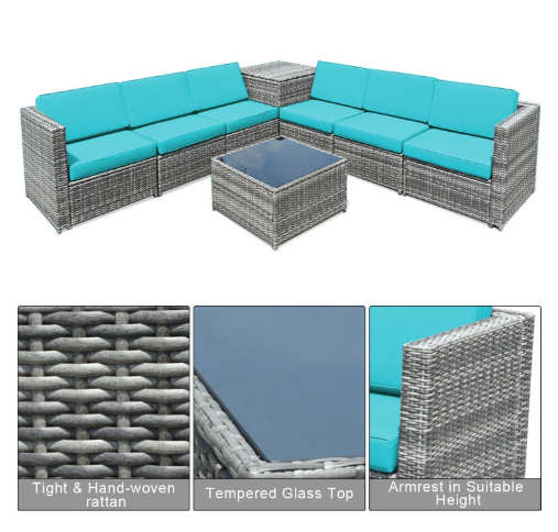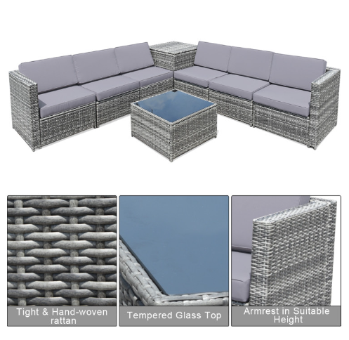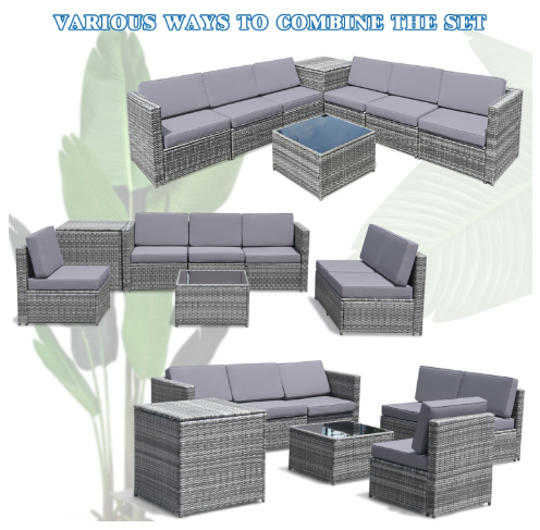 ● Various Combinations of Set: With corner sofa, armless sofa and storage table, this set can be rearranged in different ways according to your needs. The set with concise and modern appearance is ideal for your garden, patio, balcony, poolside, and backyard in your house to be a perfect additional décor.