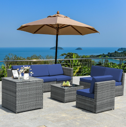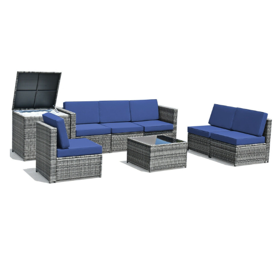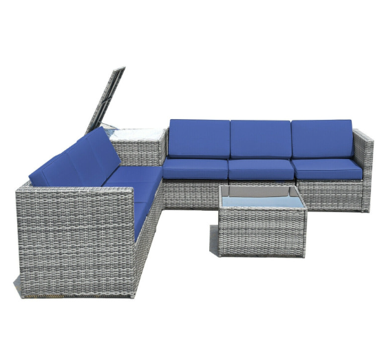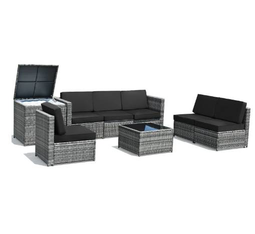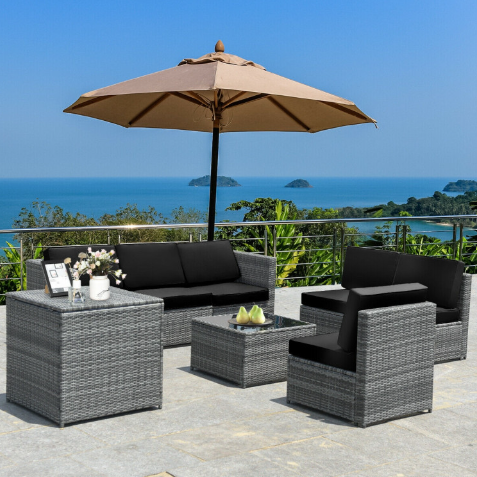 8 Pieces Wicker Sofa Rattan Dining Set Patio Furniture with Storage Table
