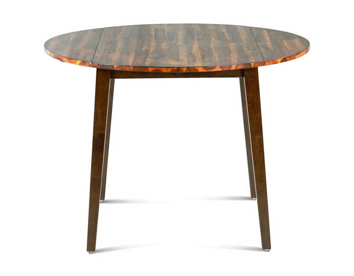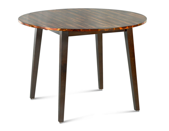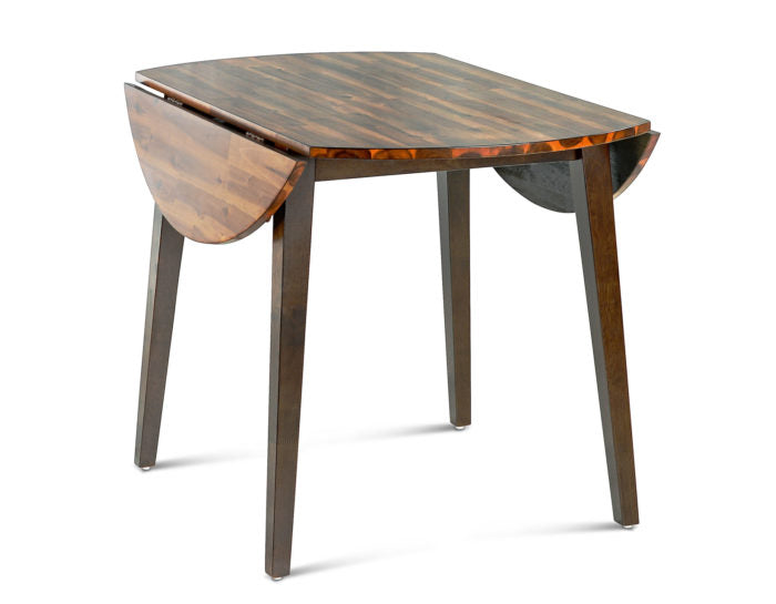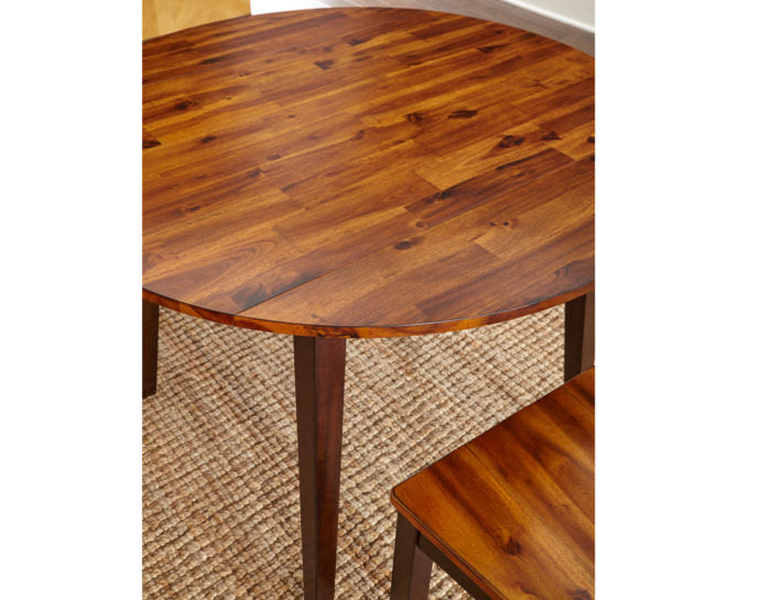 Casual and imminently livable, Abaco features a wide choice of dining table options with solid acacia butcher block tops and cordovan tone-on-tone finishes. The Abaco leaf table features two leaves that fold up to a 42 inch round table that seats four and down for a more intimate setting for two. The side chair features a solid wood scooped seat that is both fashionable and comfortable.