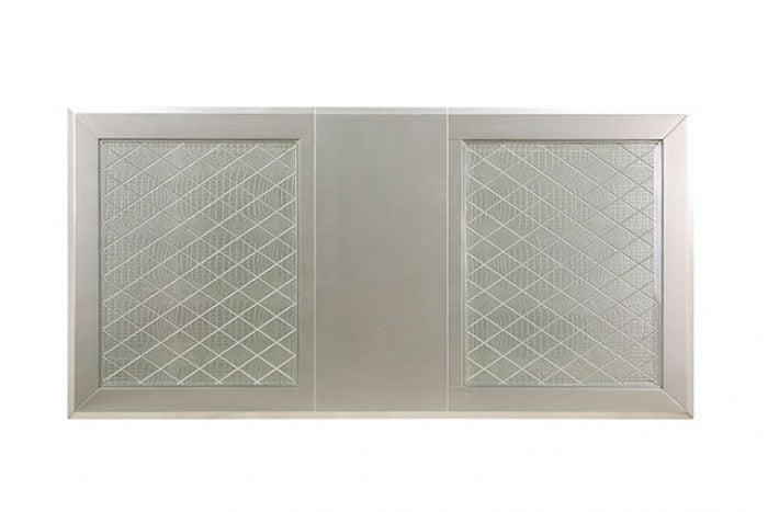 Shimmering from its tasteful mirror tile accents, this dining set proposes glam to any home that welcomes it. Light bounces beautifully from the textured panels underneath the tempered glass top, which expands with a leaf to accommodate more guests in the rectangular variation. Find luxury in the padded leatherette seats with button tufting for the back and contoured for comfort. The matching server provides easy access to your wines and multiple full extension drawers. The subtle warmth of the finish tops off this chic ensemble.