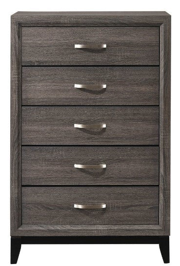 Create a modern oasis in your bedroom with the Akerson Bedroom Collection. With its sleek lines and cool gray finish, this bedroom furniture is perfect for anyone looking for a modern style. The wooden panels on the headboard and footboard give it a touch of rustic charm, making it the perfect combination of styles. This collection is perfect for anyone who wants a stylish and chic bedroom without having to sacrifice functionality. With plenty of storage options and a stylish design, the Akerson collection has everything you need to create the perfect bedroom retreat.