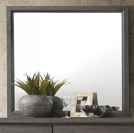 This Akerson Dresser Mirror in Grey is the perfect contemporary addition to any home. Made by Crown Mark using premium hardwood solids and veneers, it has a timeless look and a strong, durable construction that’s easy to clean and maintain. The simple lines and elegant design offer a beautiful and refined statement in any bedroom. Enjoy the Akerson Contemporary Rectangular Dresser Mirror, the perfect piece to bring sophistication to your home décor!
