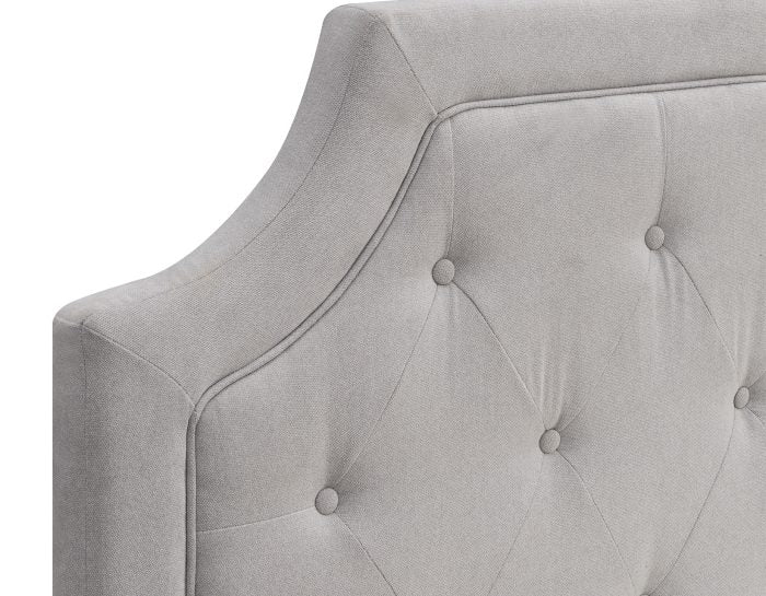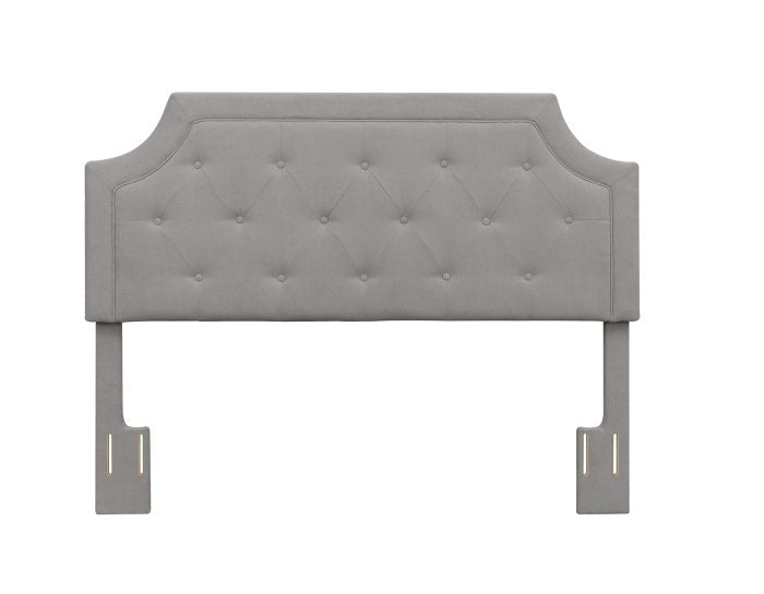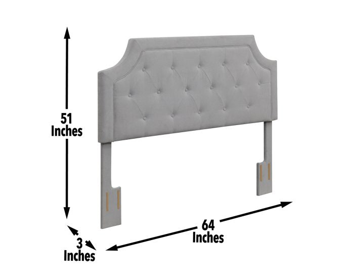 Rejuvenate your bedroom with the sophisticated look of The Alta upholstered headboard; the modern look makes the Alta headboard the focal point of your room and show off your own personal sense of style. With scooped corners and elegant diamond tufting, it will become the centerpiece of any contemporary or transitional décor. The soft, Grey microfiber fabric and upholstered, solid wood posts provide a rich look. It’s perfect for reading in bed or a relaxing chat on the phone, and built to fit a full or queen bedframe. The height is adjustable to fit any mattress.