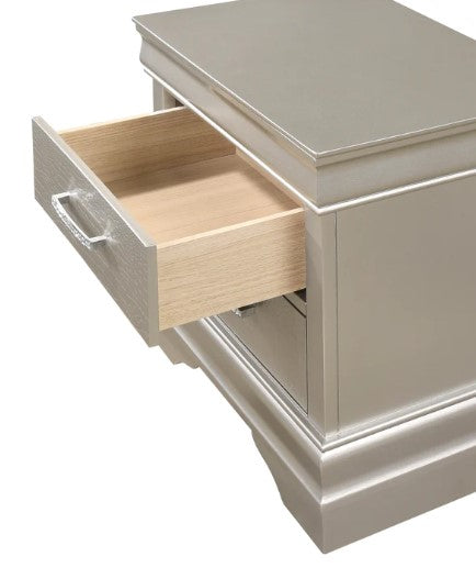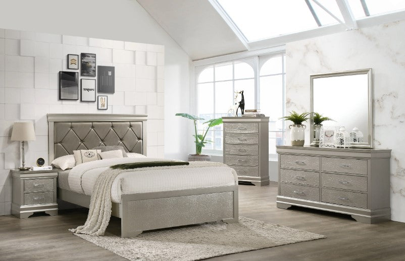 Delight in classic elegance with the Amalia Bedroom Collection. From the intricate details in the headboard to the silver trim on every drawer, this set is fit for a queen. Featuring beautiful materials and construction, this set will last for years to come. With its timeless look, the Amalia Silver bedroom collection is perfect for anyone who wants classic elegance in their home. Add it to your shopping list today!