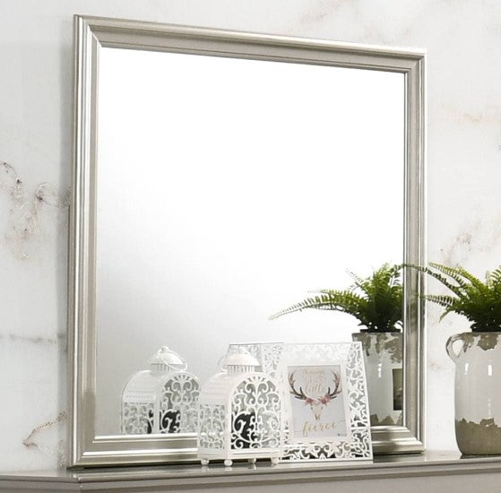 The Amalia Dresser Mirror from Crown Mark is a stylish and modern piece of furniture. This hardwood veneers and solid built dresser mirror has a glamorous champagne finish and will surely enhance any bedroom space. Its classic design is durable and easy to clean, so you can enjoy it for years. With its beautiful silver finish, it will easily work with most colour palettes to fit your own personal style. Add a touch of glamour to your bedroom space and make a statement with the Amalia Dresser Mirror.