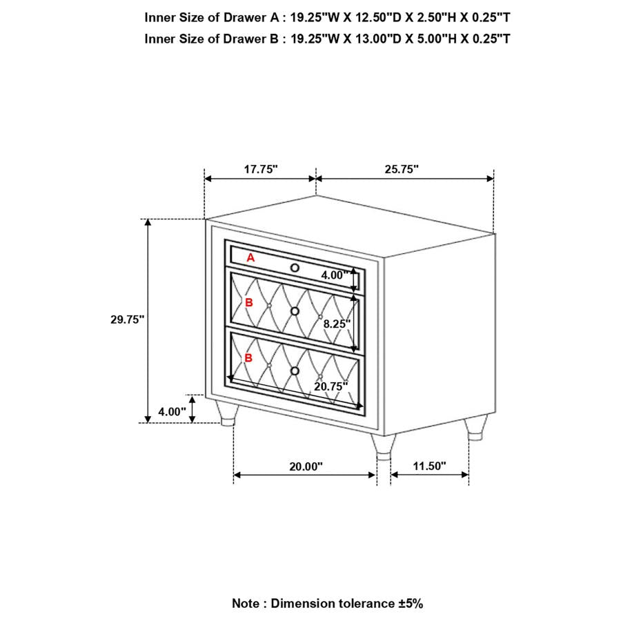 Antonella 3-drawer Upholstered Nightstand Ivory and Camel