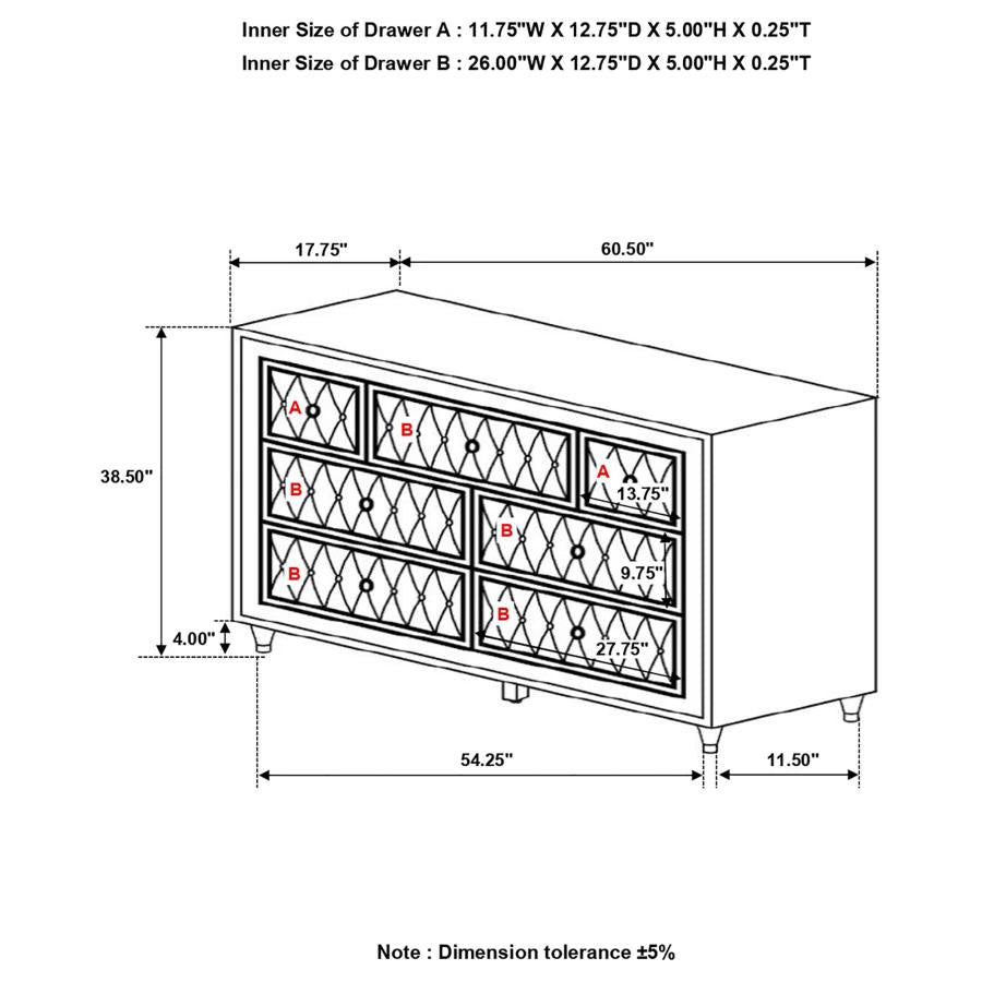 Antonella 7-drawer Upholstered Dresser Ivory and Camel