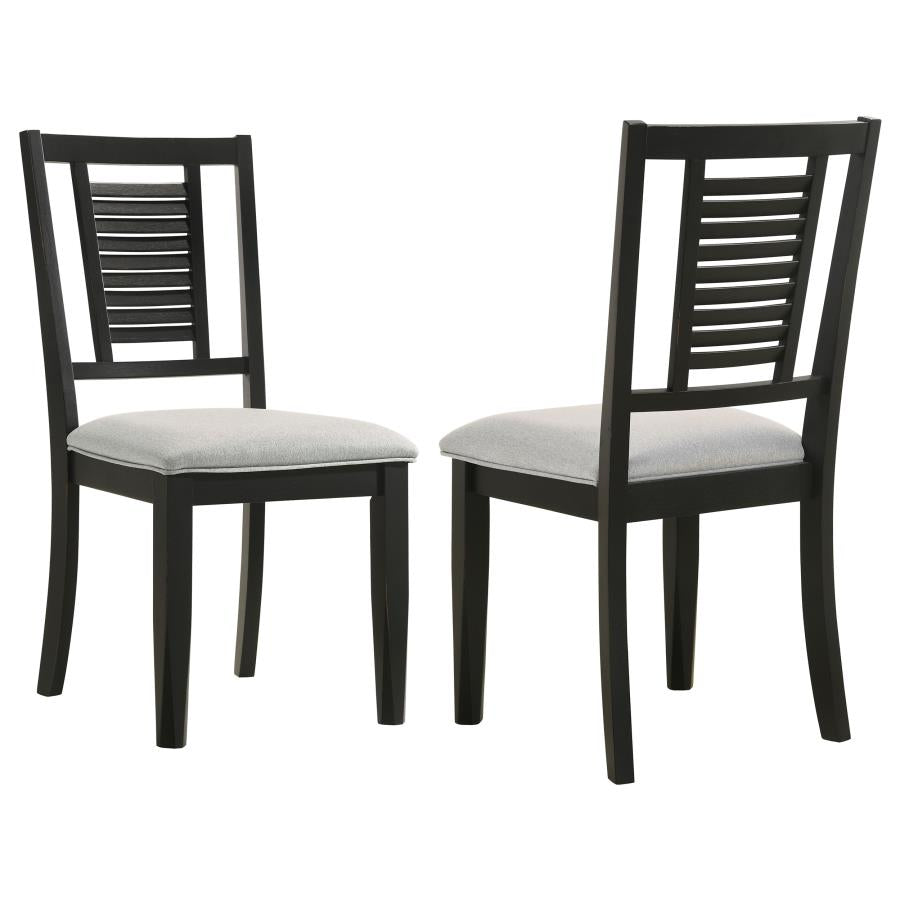 Slide into comfort with these dining side chairs, where style meets relaxation. The louvered back design whispers of tropical breezes and architectural savvy, a statement in any dining room. Paired with fabric upholstered seat cushions, these chairs promise a seating experience that's both aesthetically pleasing and soothingly comfortable. Whether part of a lively family dinner or a quiet evening meal, these chairs are a silent vow of comfort.