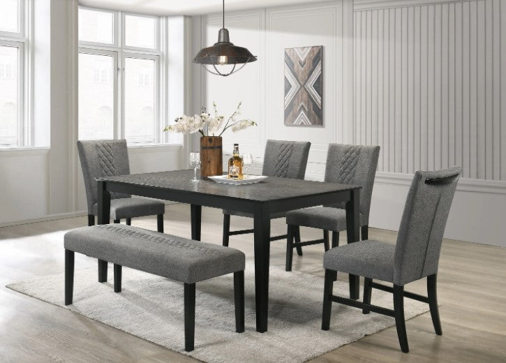 Dining Bench Info: Upholstered dining bench with tufted seat